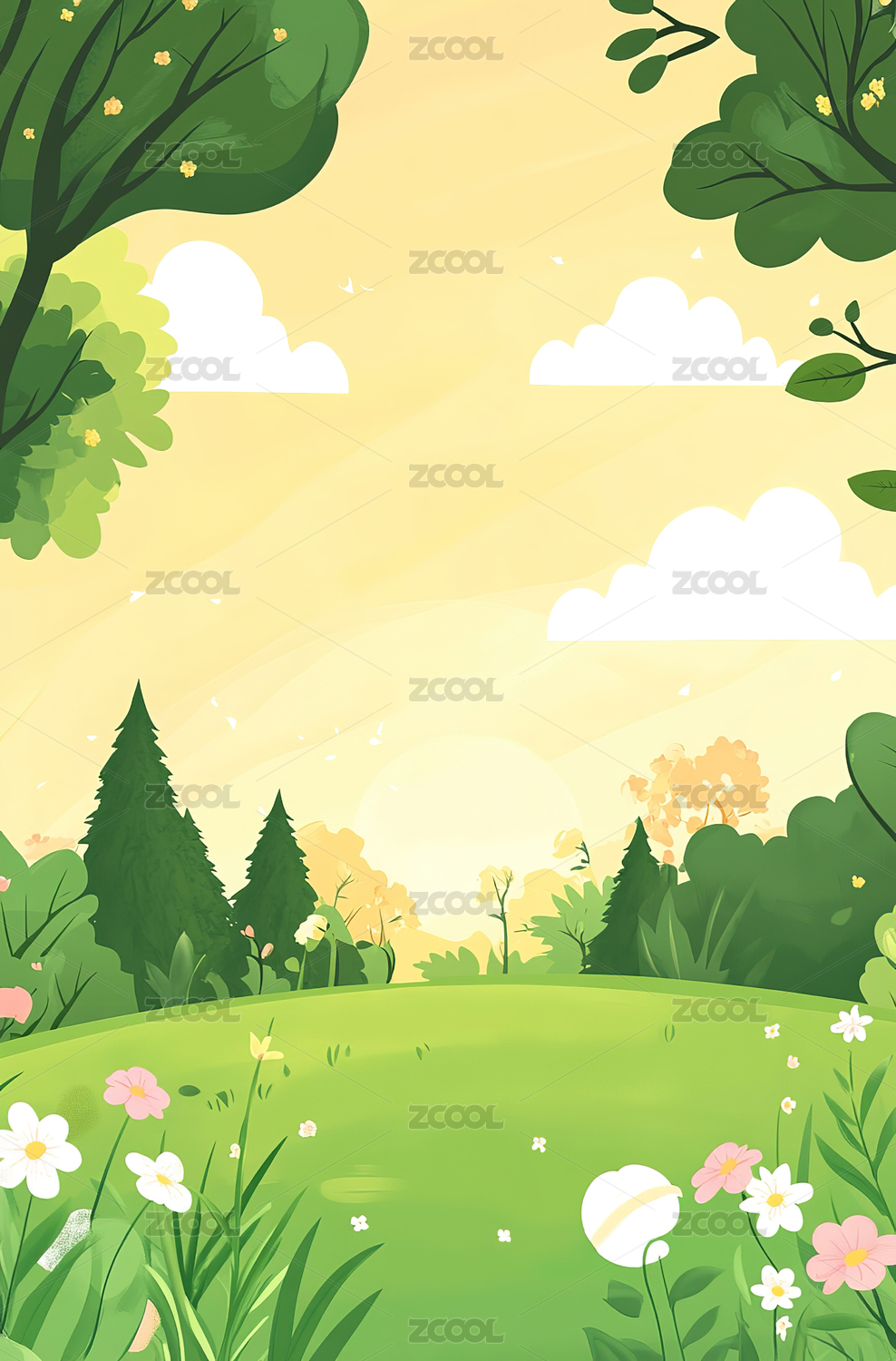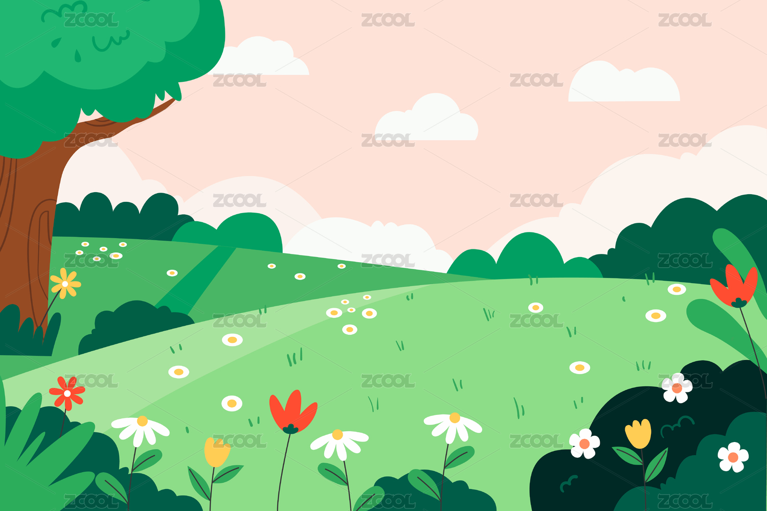 绿色,粉色,花朵,自然,清新,树木,天空,阳光,风景,春日
