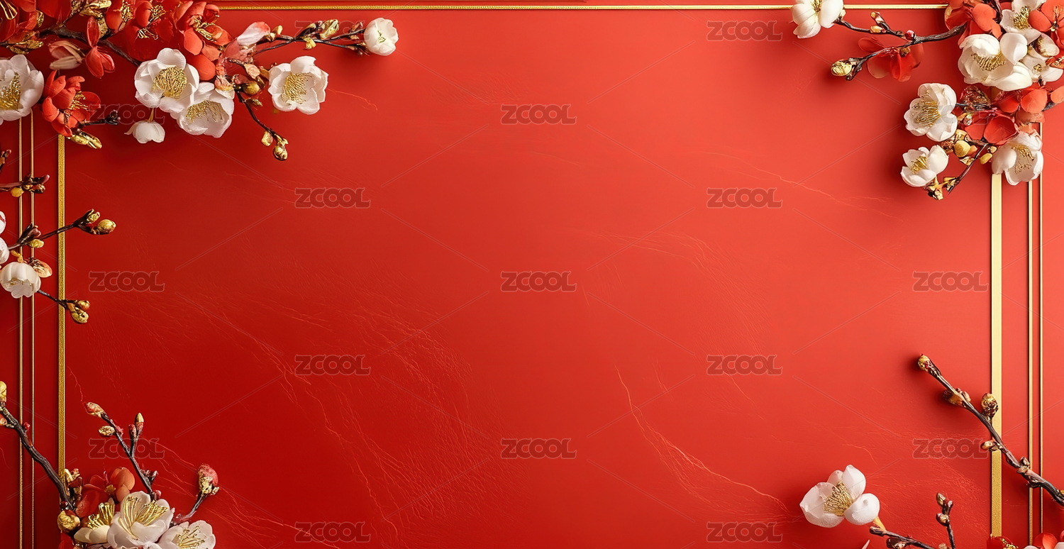 红色背景配金色边框与红梅