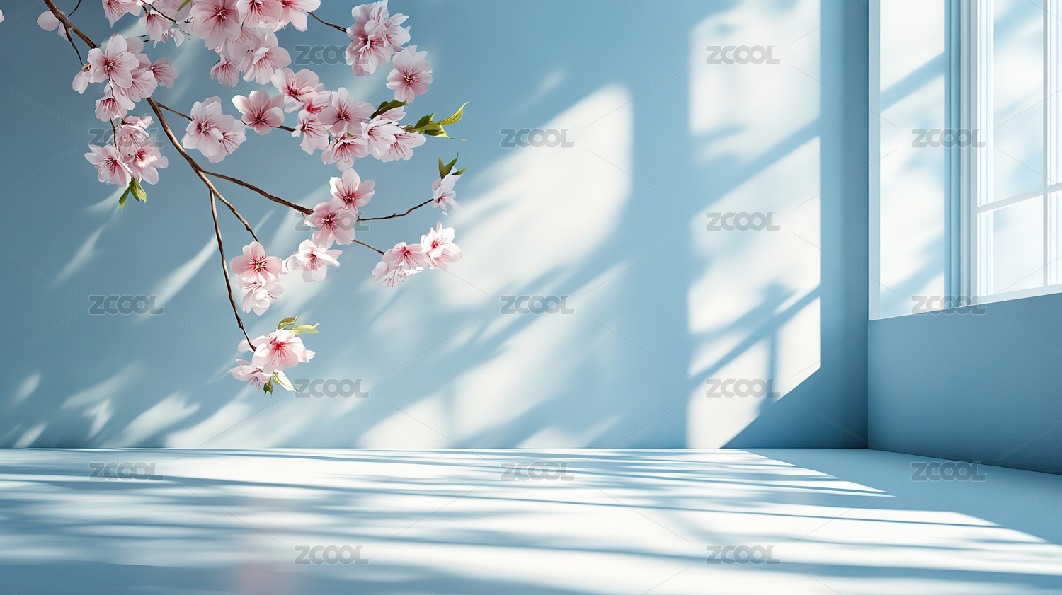 蓝白花朵墙壁与木地板