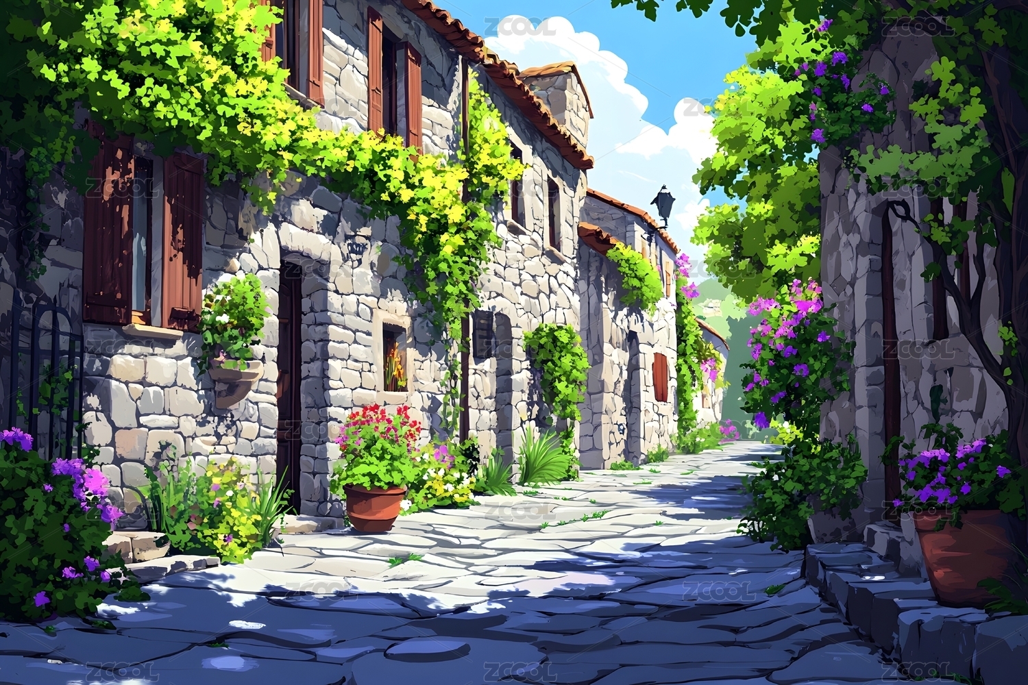 青藤爬墙的石板小巷