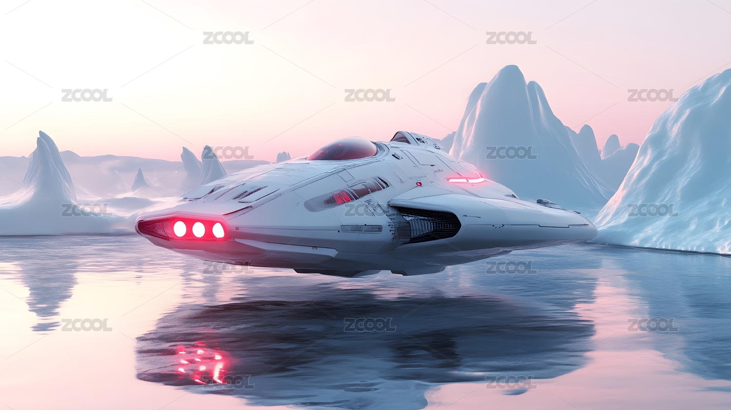 白色未来派宇宙飞船飞过水面