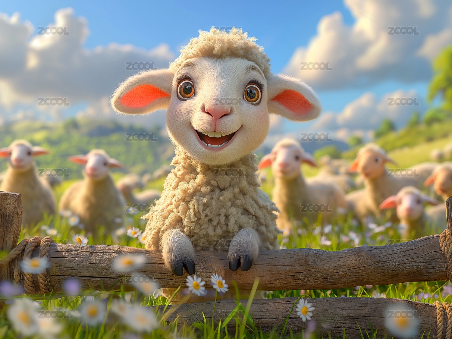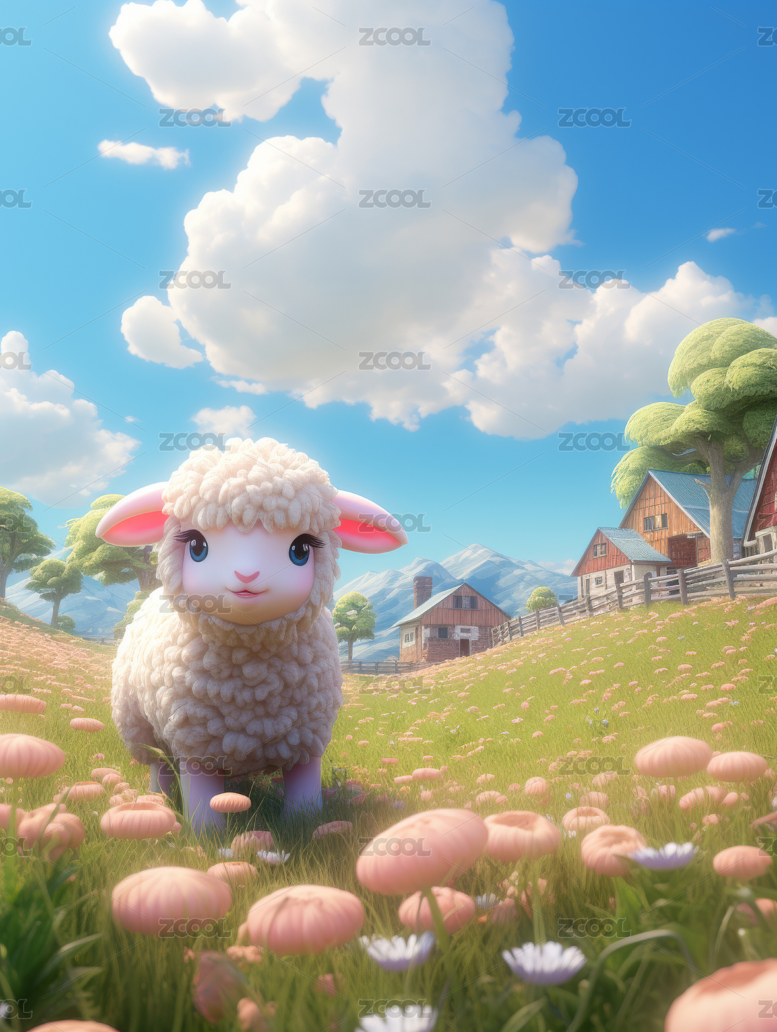 艺术, 温暖, 幸福, 场景, 自然, 和平, 田园, 春天, 草地, 卡通