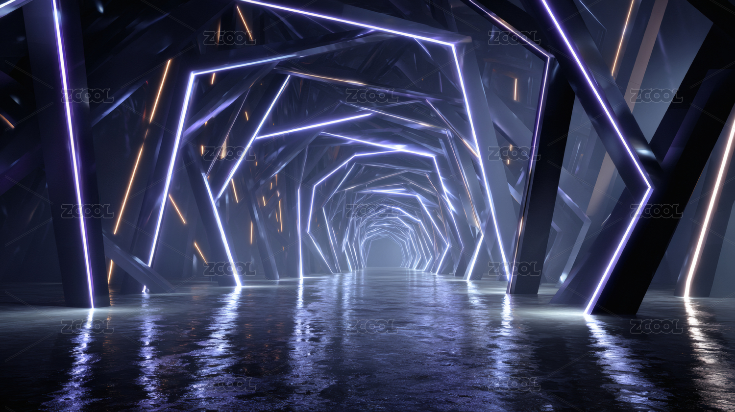 紫色霓虹灯隧道,光影交错,通向远方