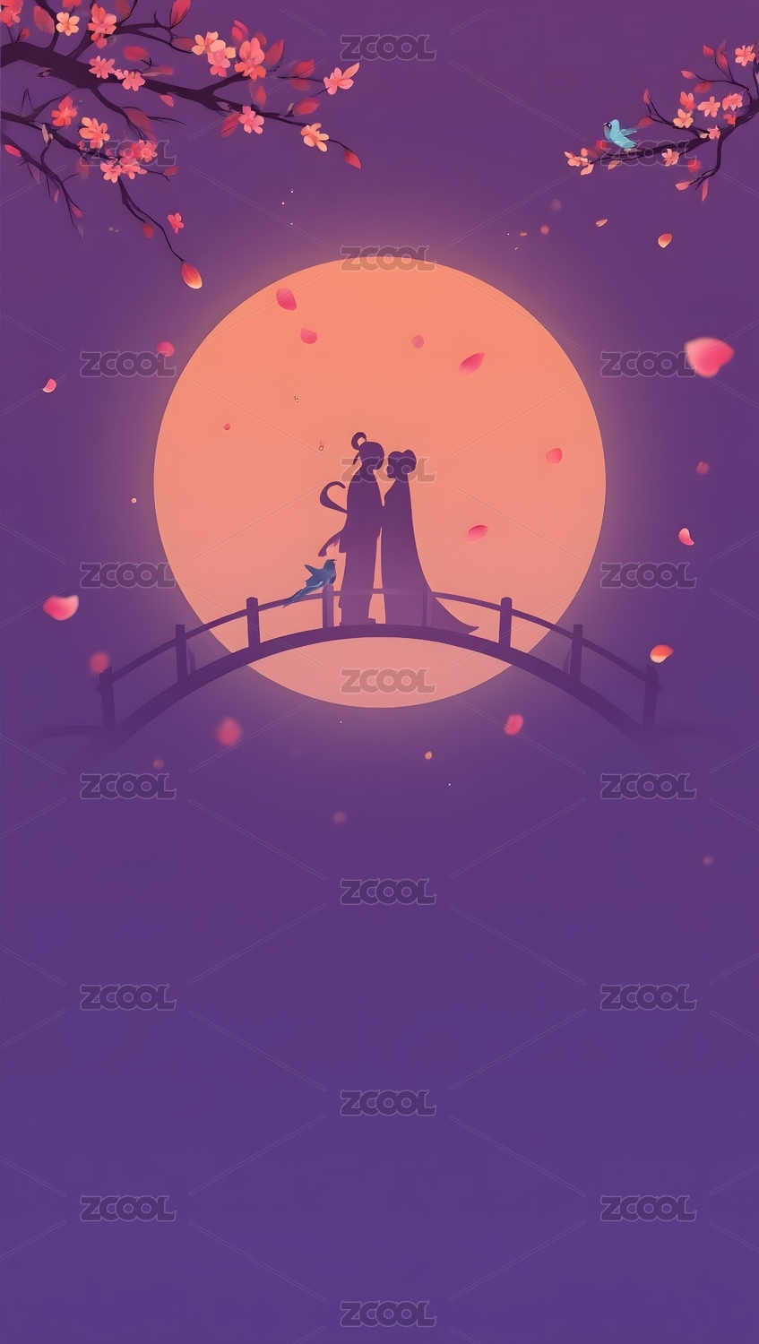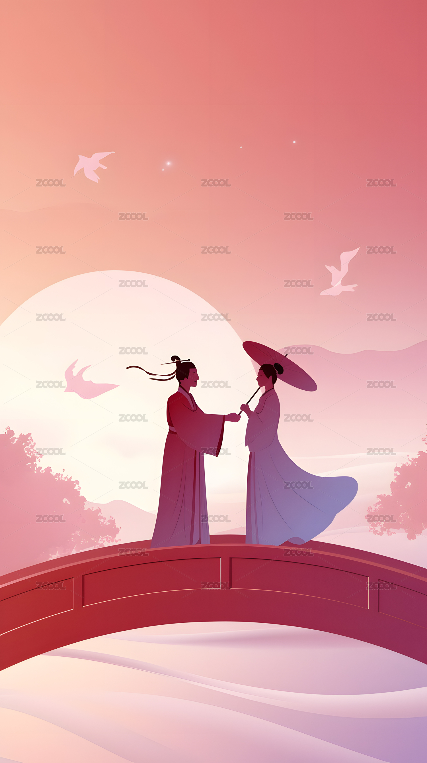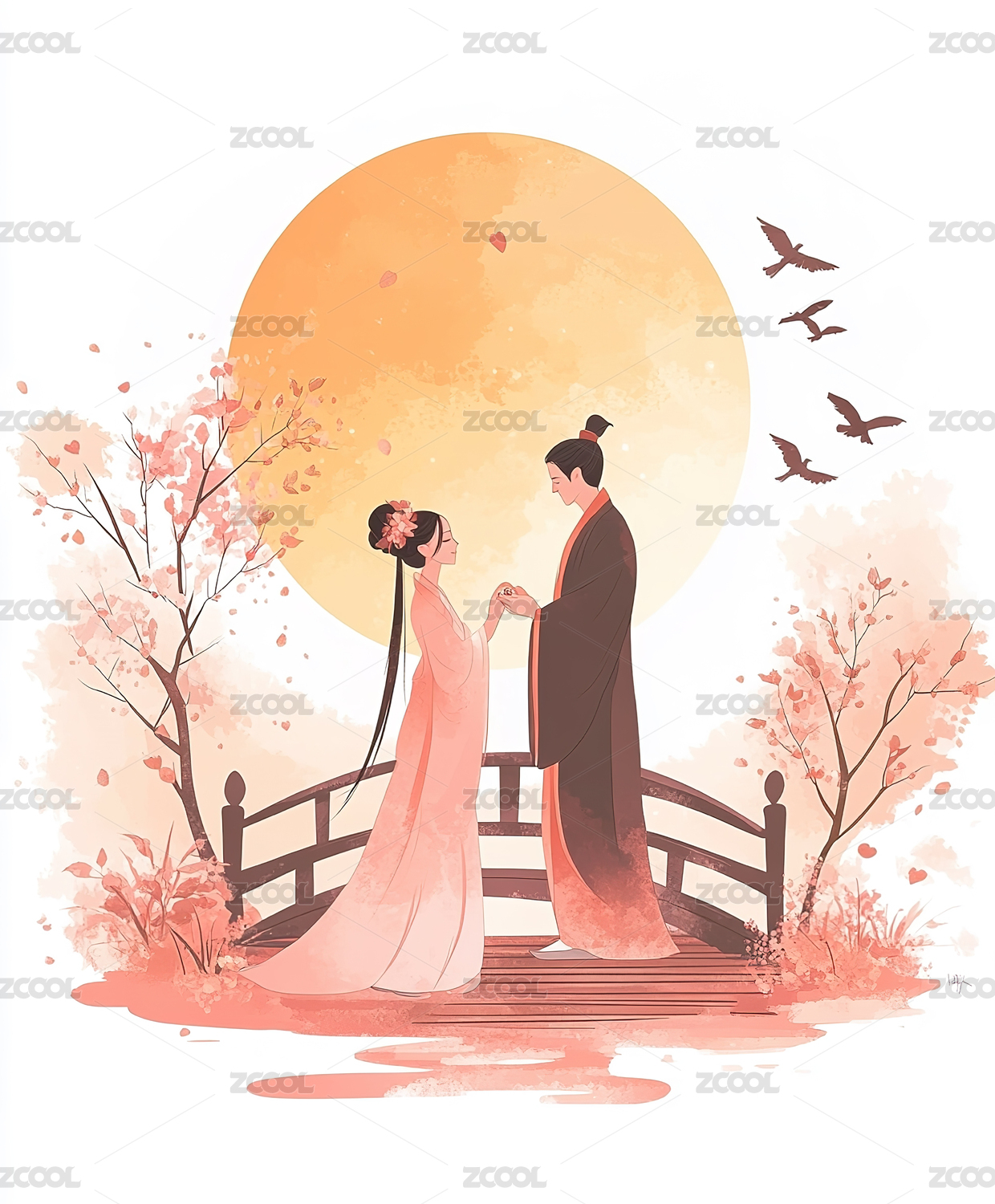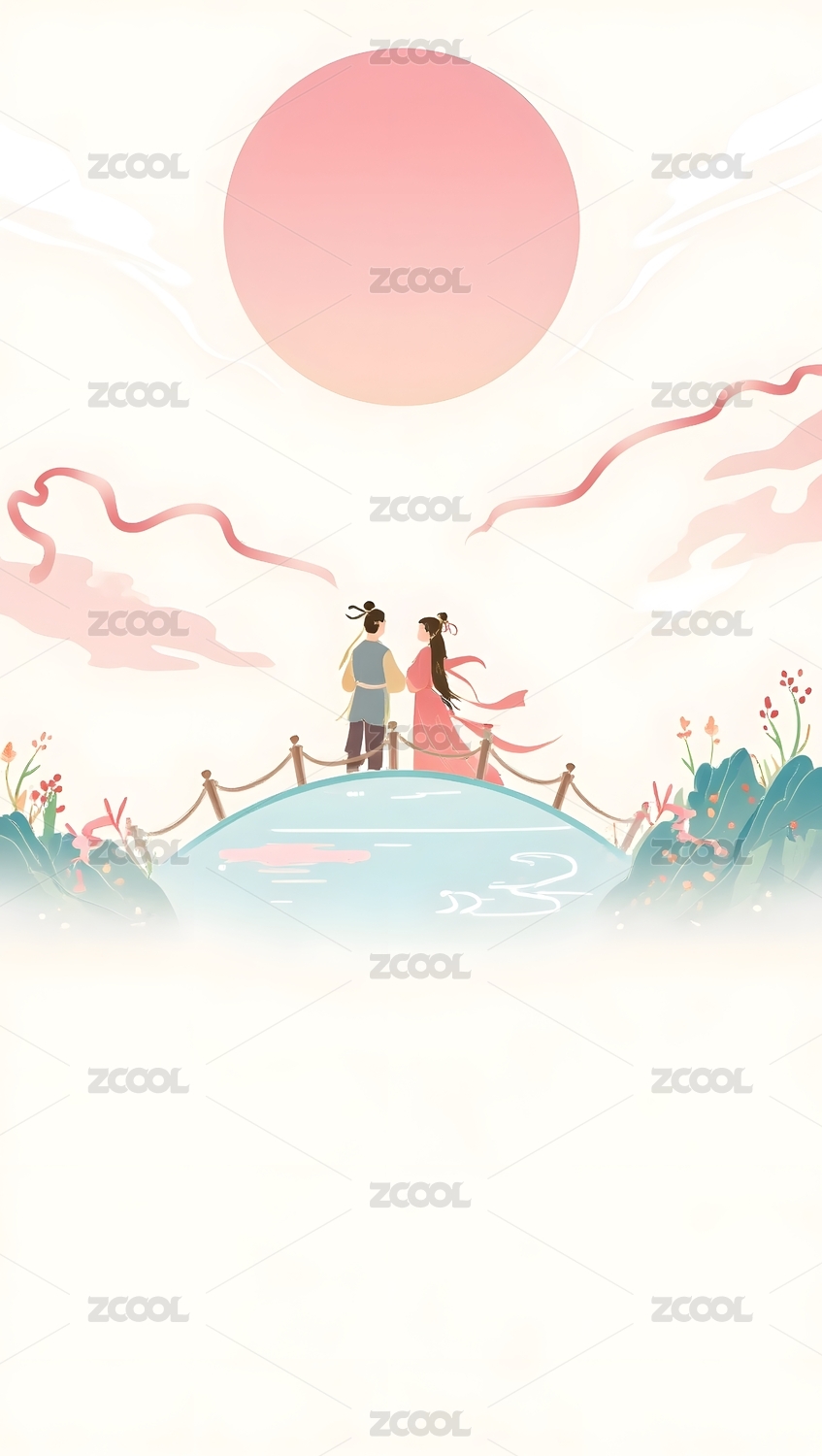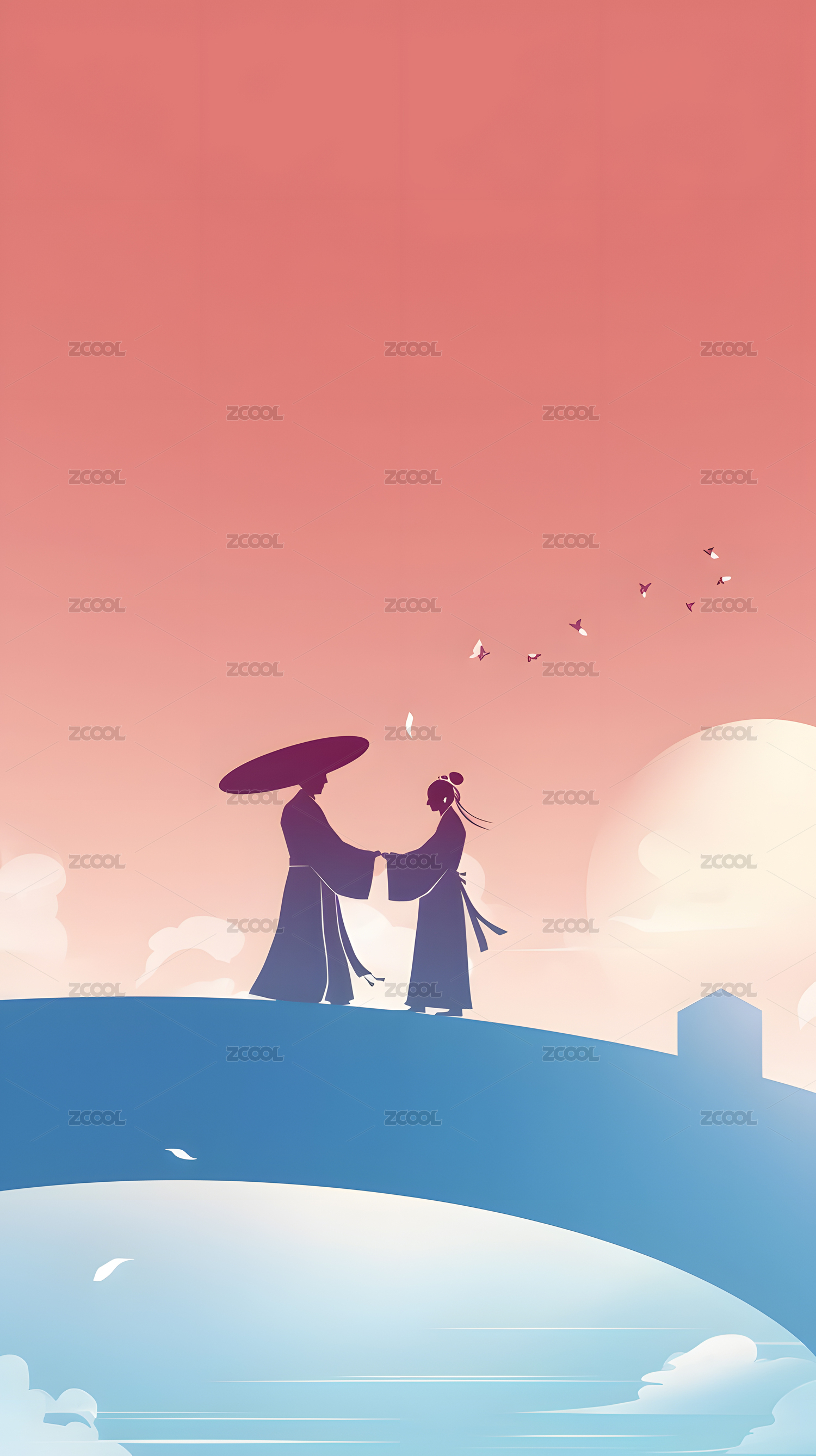 中国风,情侣,人物,插画,浪漫,爱情,桥,背景,唯美,艺术