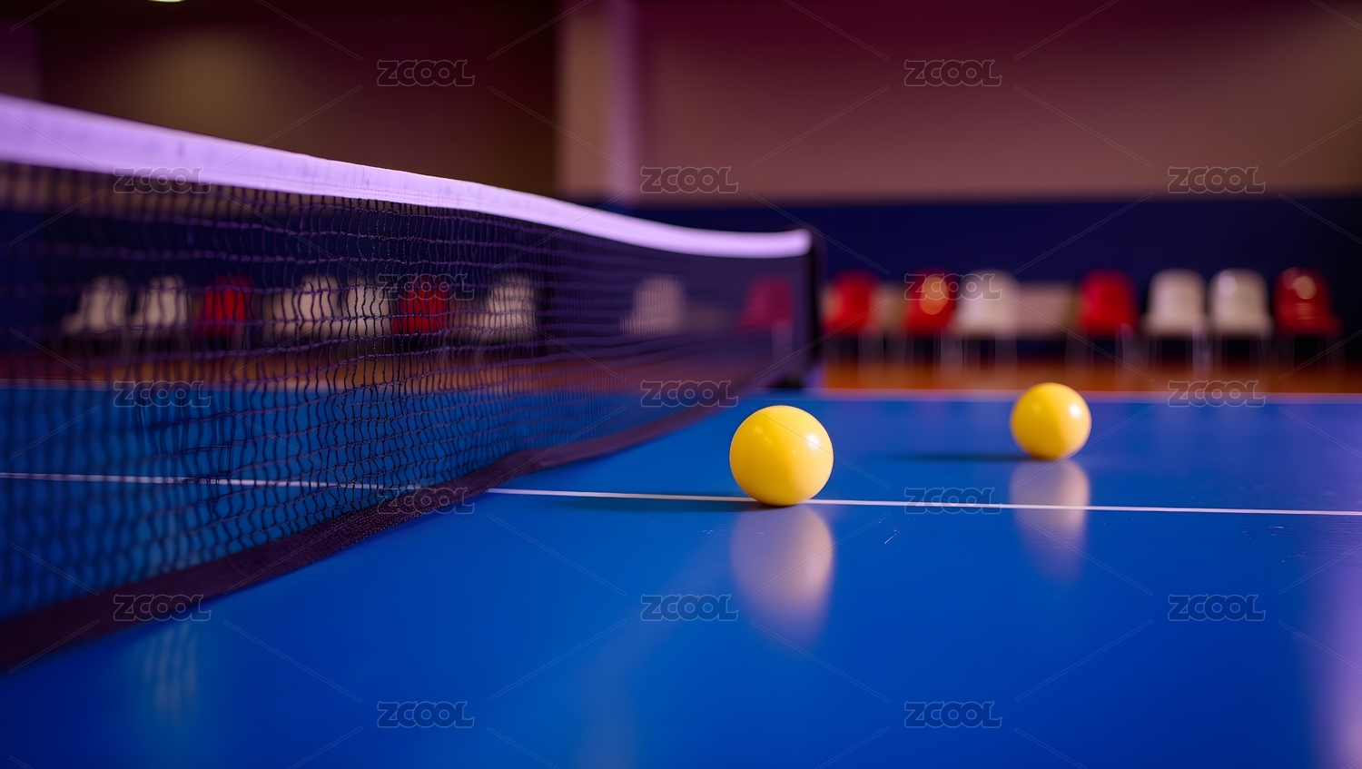 乒乓球桌上的乒乓球体育竞技特写质感素材