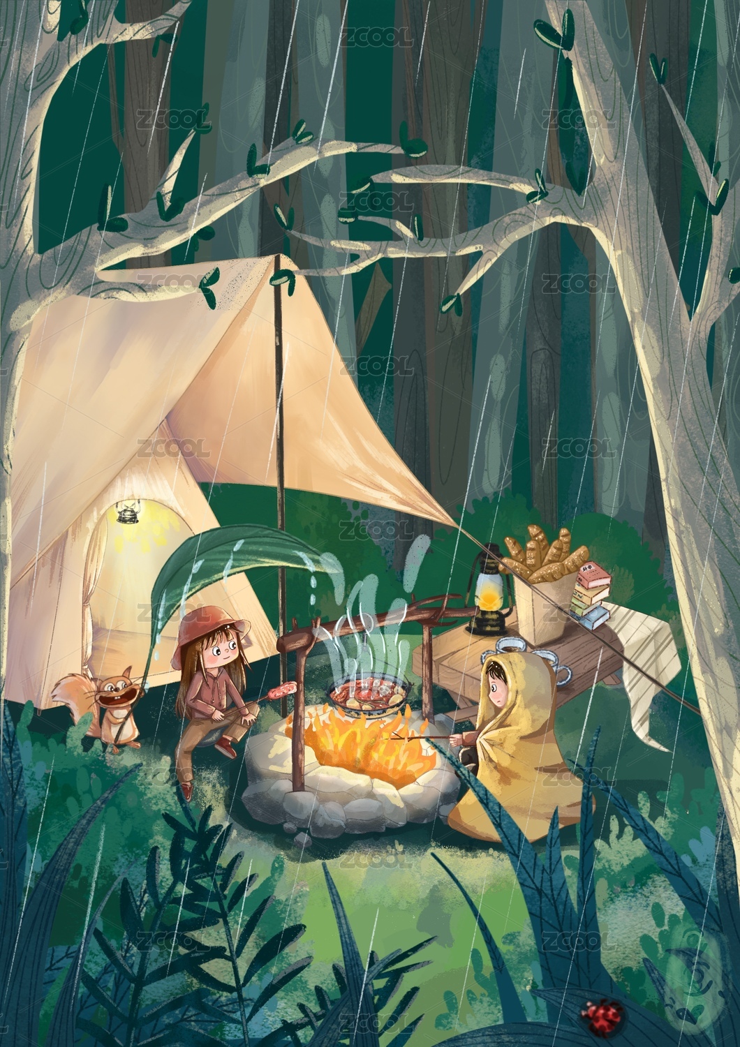女孩,森林,奇遇,绘本,歌唱,猫腻,派对,食物,狐狸,熊