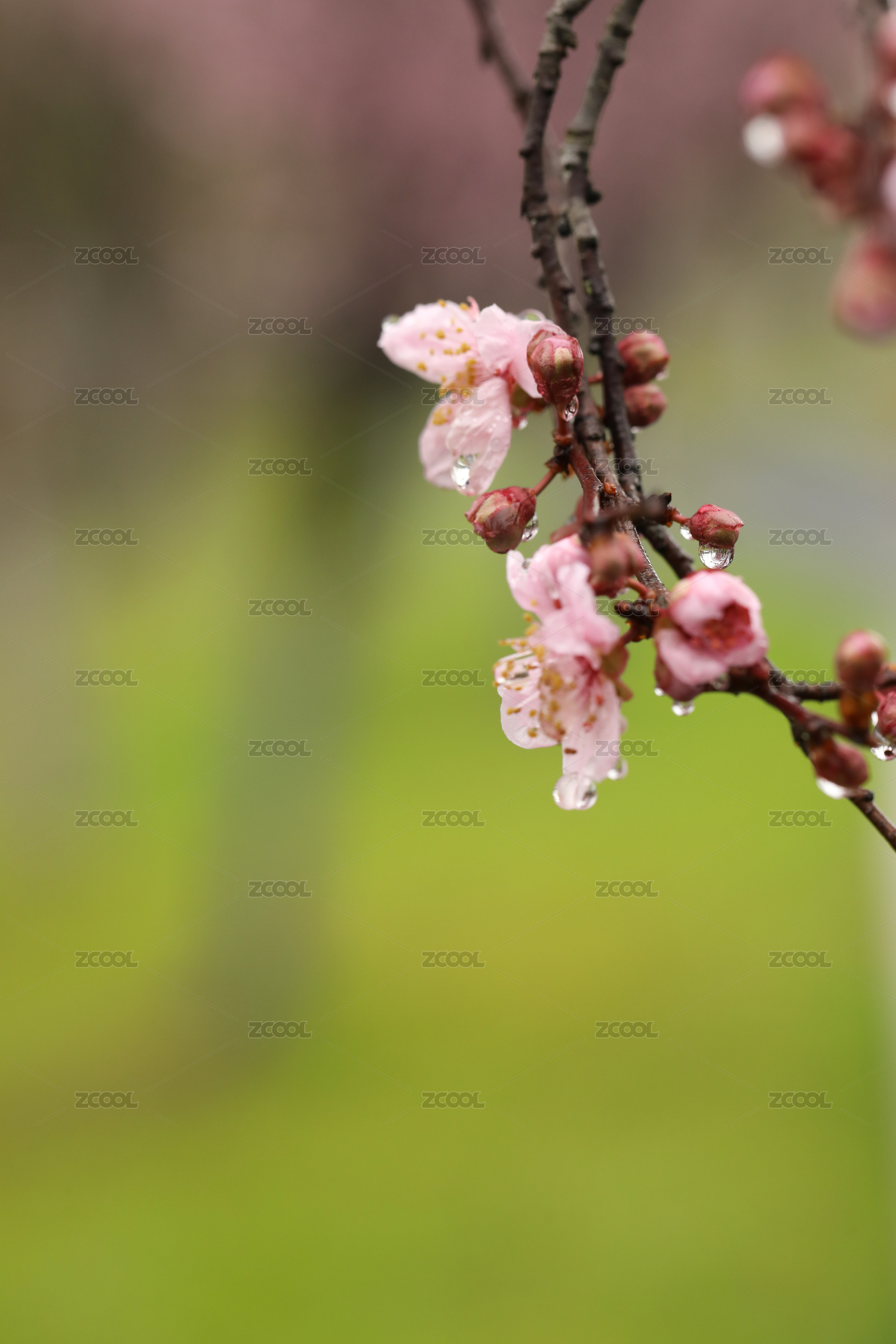 春天粉色的梅花和雨滴