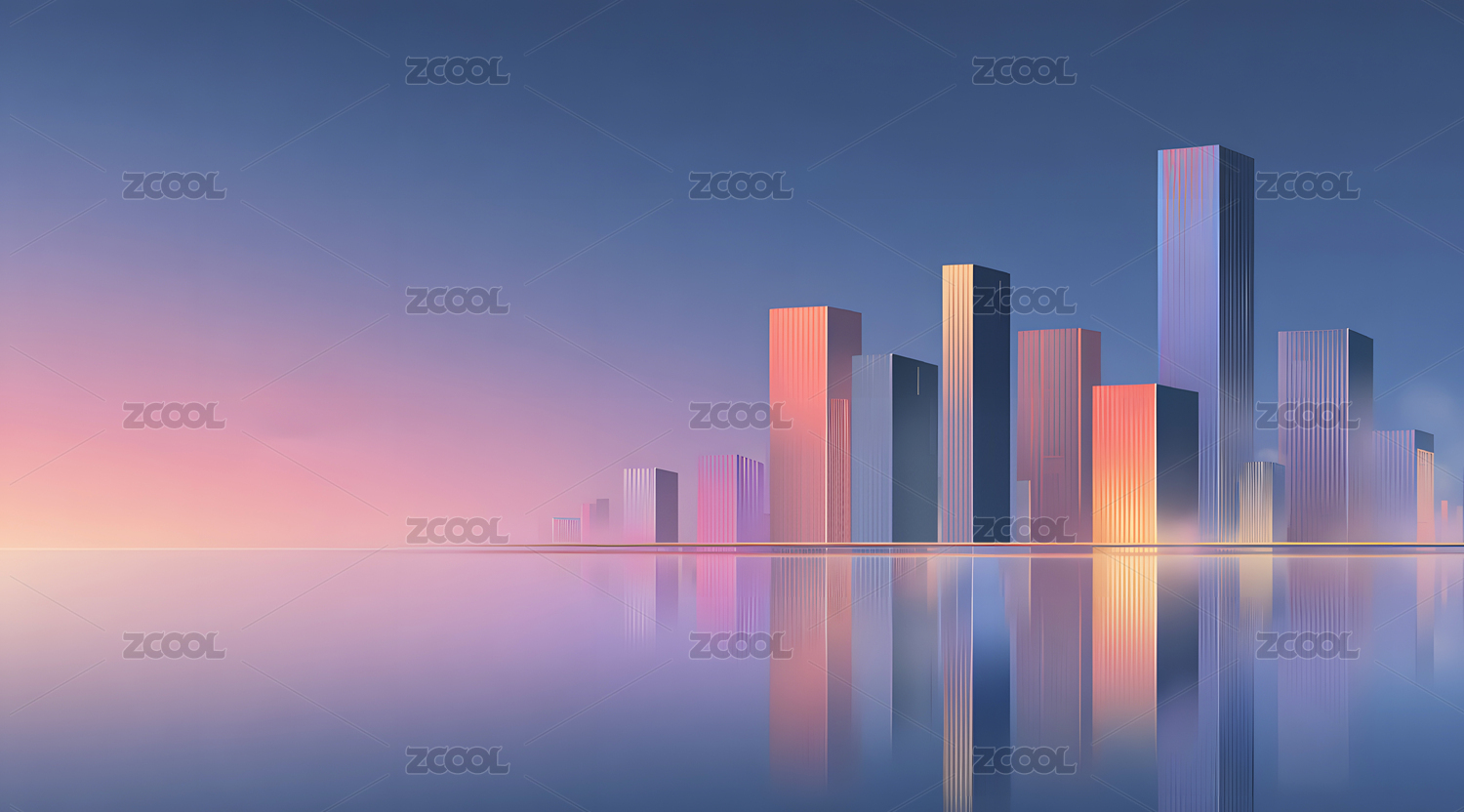 未来,现代,反射,灯光,建筑,城市,高楼,橙色,虚拟,现实