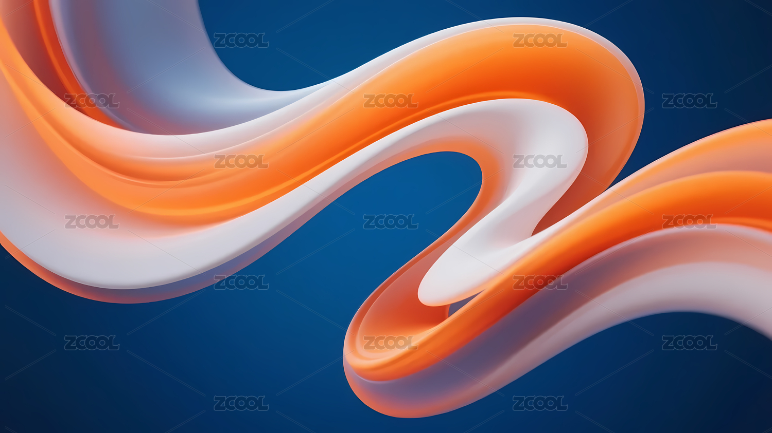 蓝色,橙色,色彩,光影,光泽,线条,立体,流动,弯曲,柔滑