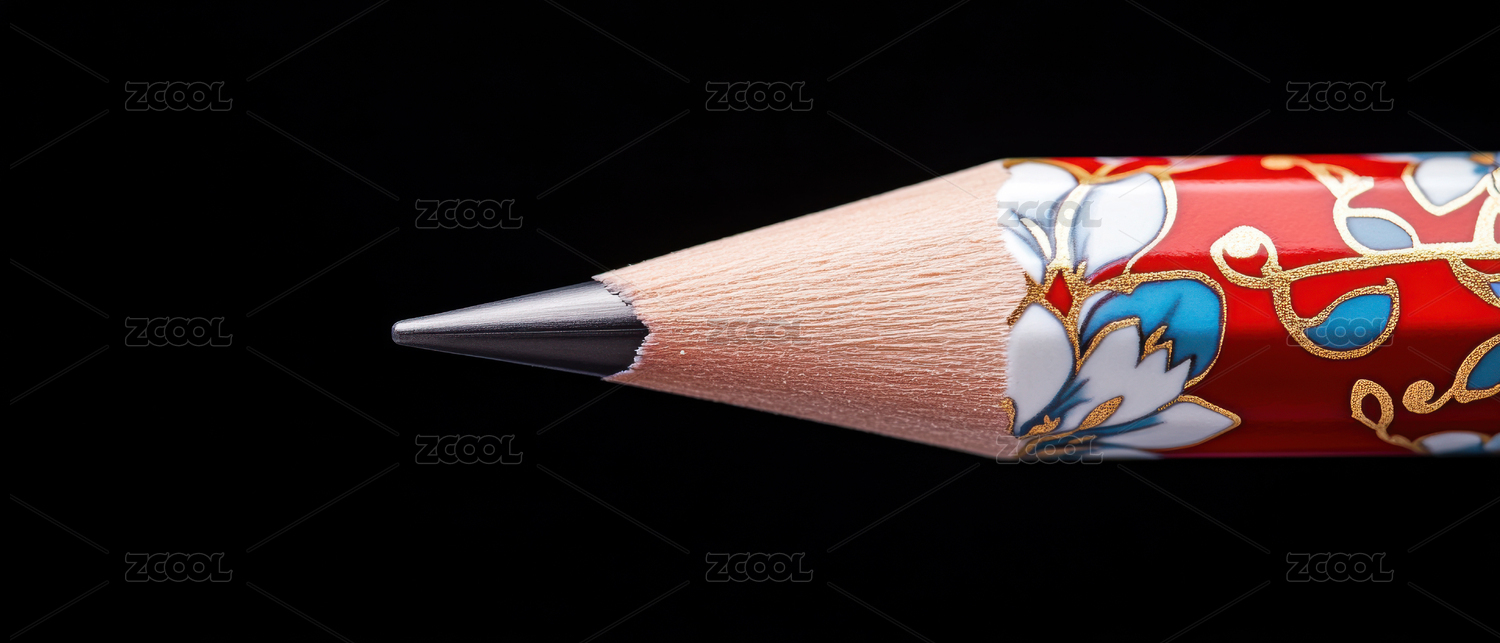 精美的花纹铅笔特写