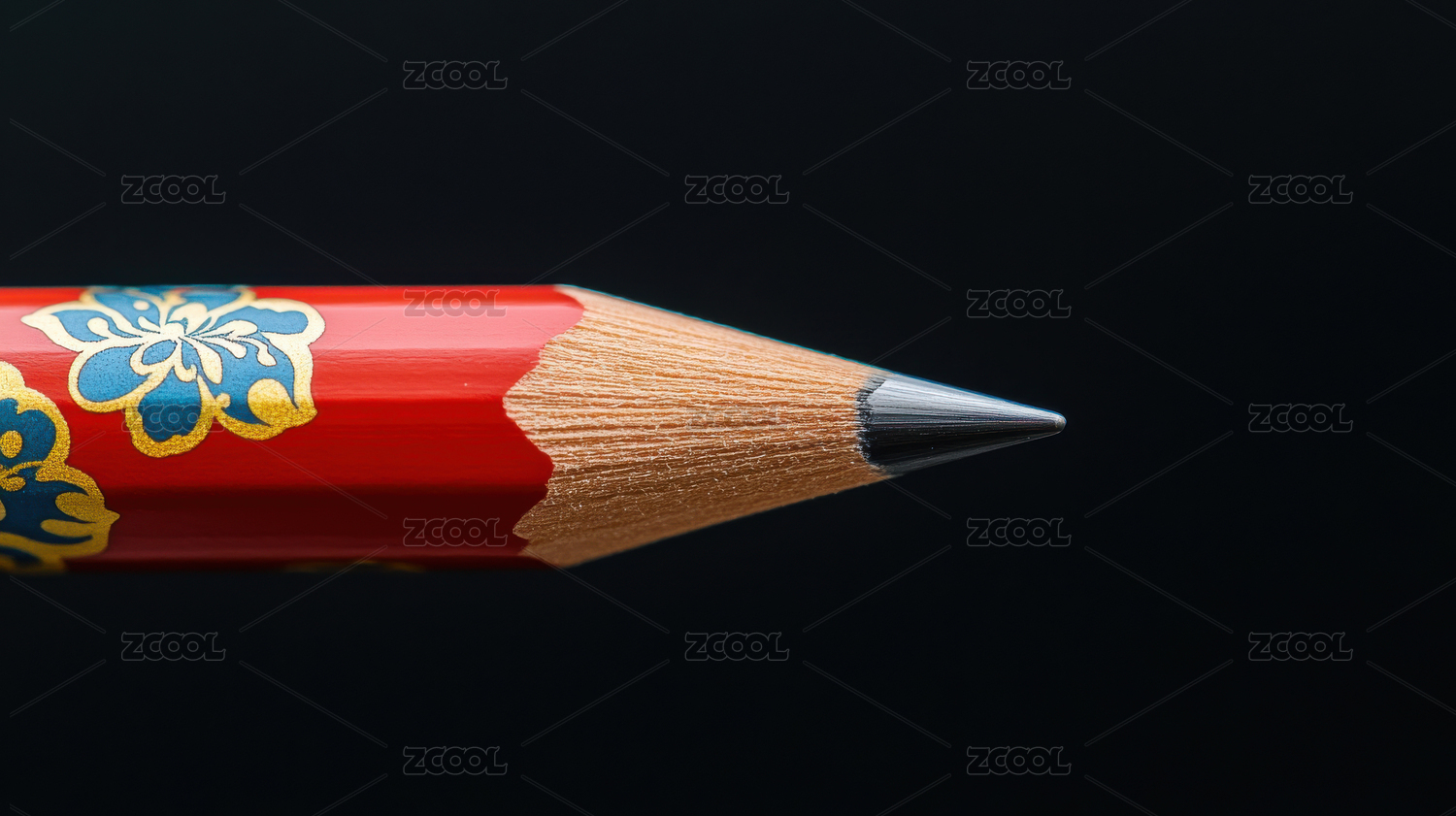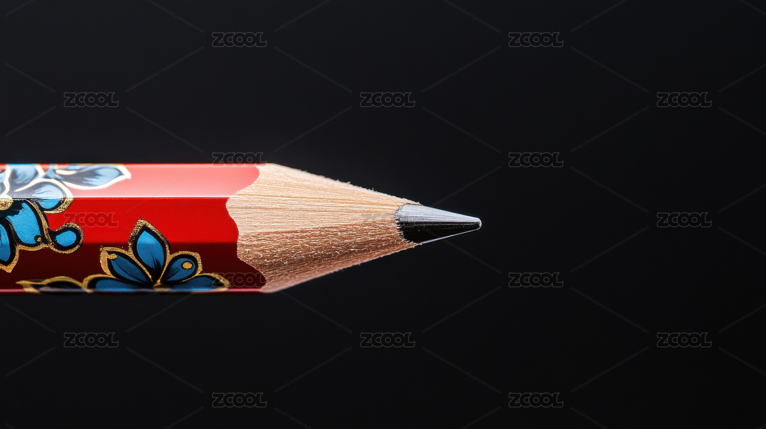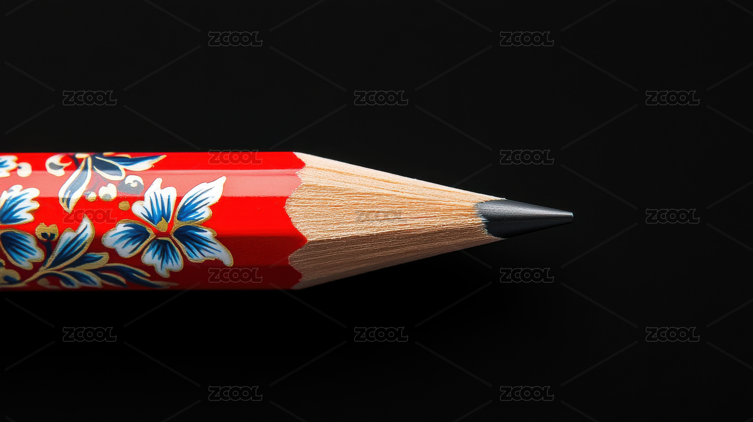 红色花纹铅笔的特写