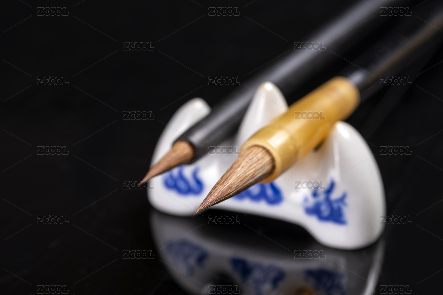 黑背景前毛笔特写