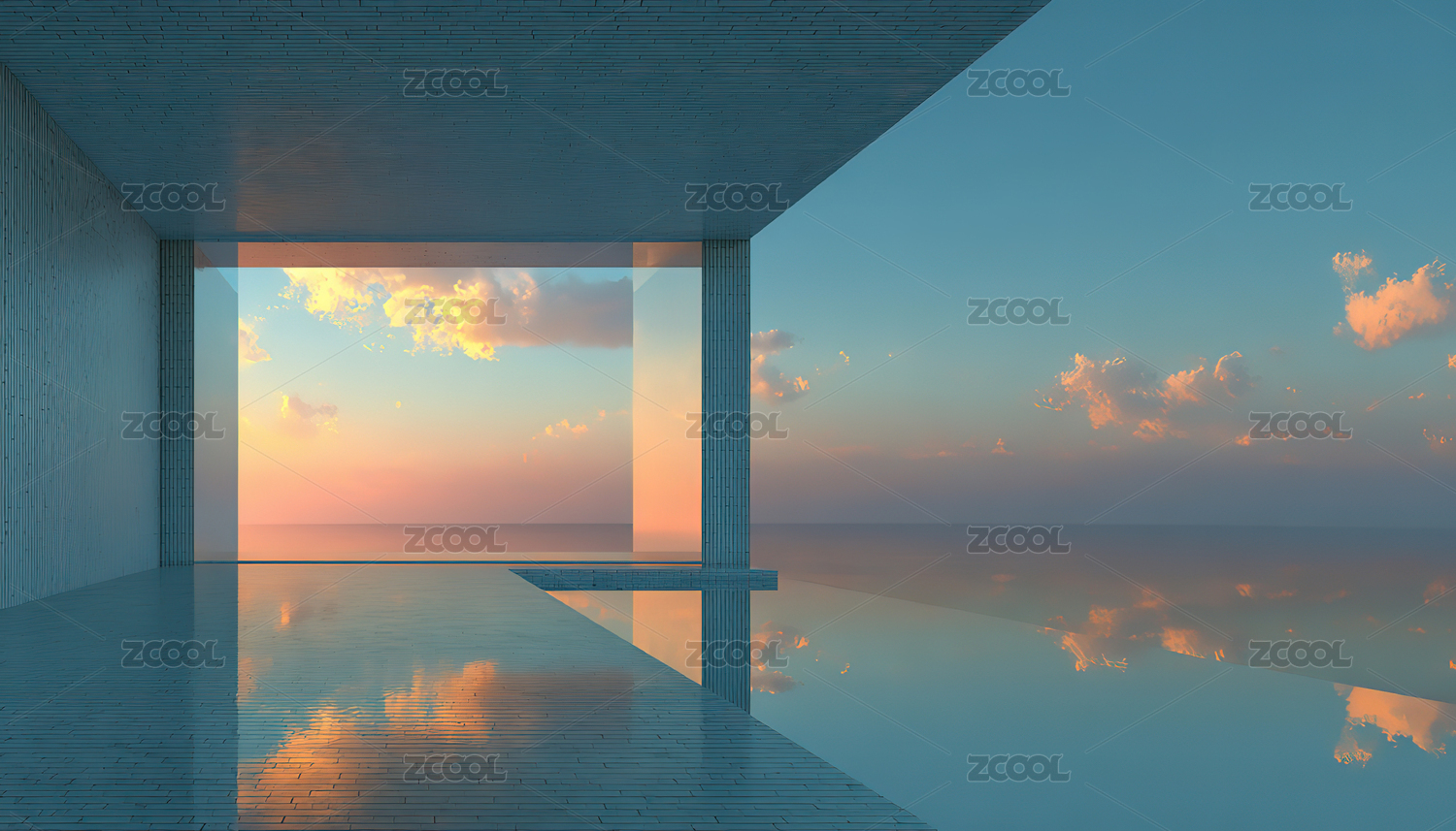 宁静,景色,建筑,光线,倒影,空间,水泥,现代,简约,设计
