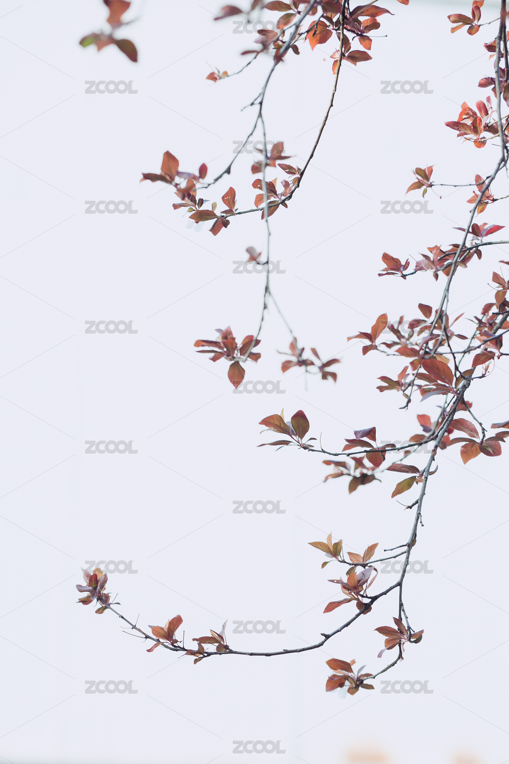极简白色背景下的深秋红叶