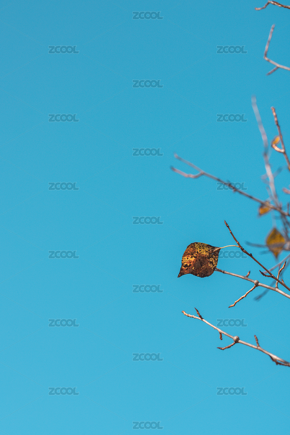 深秋枯树枝上的黄叶落叶
