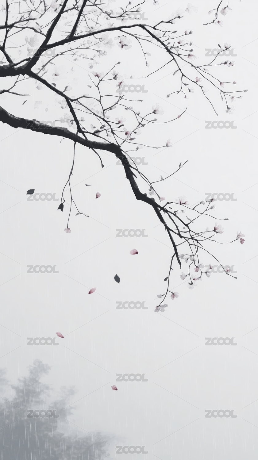 树枝在雾中若隐若现