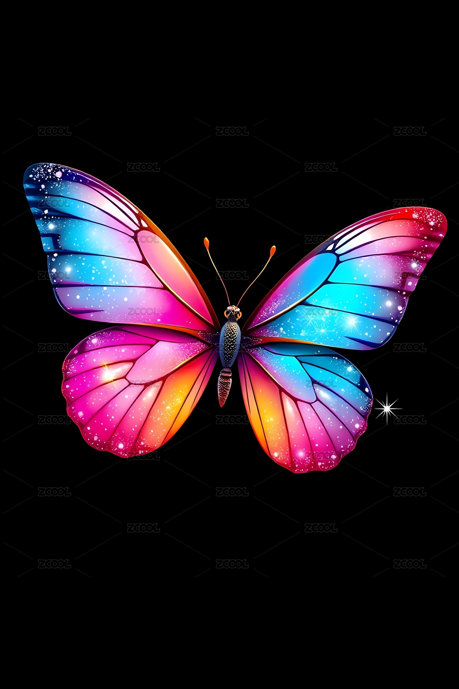 黑色背景上炫彩斑斓的梦幻蝴蝶