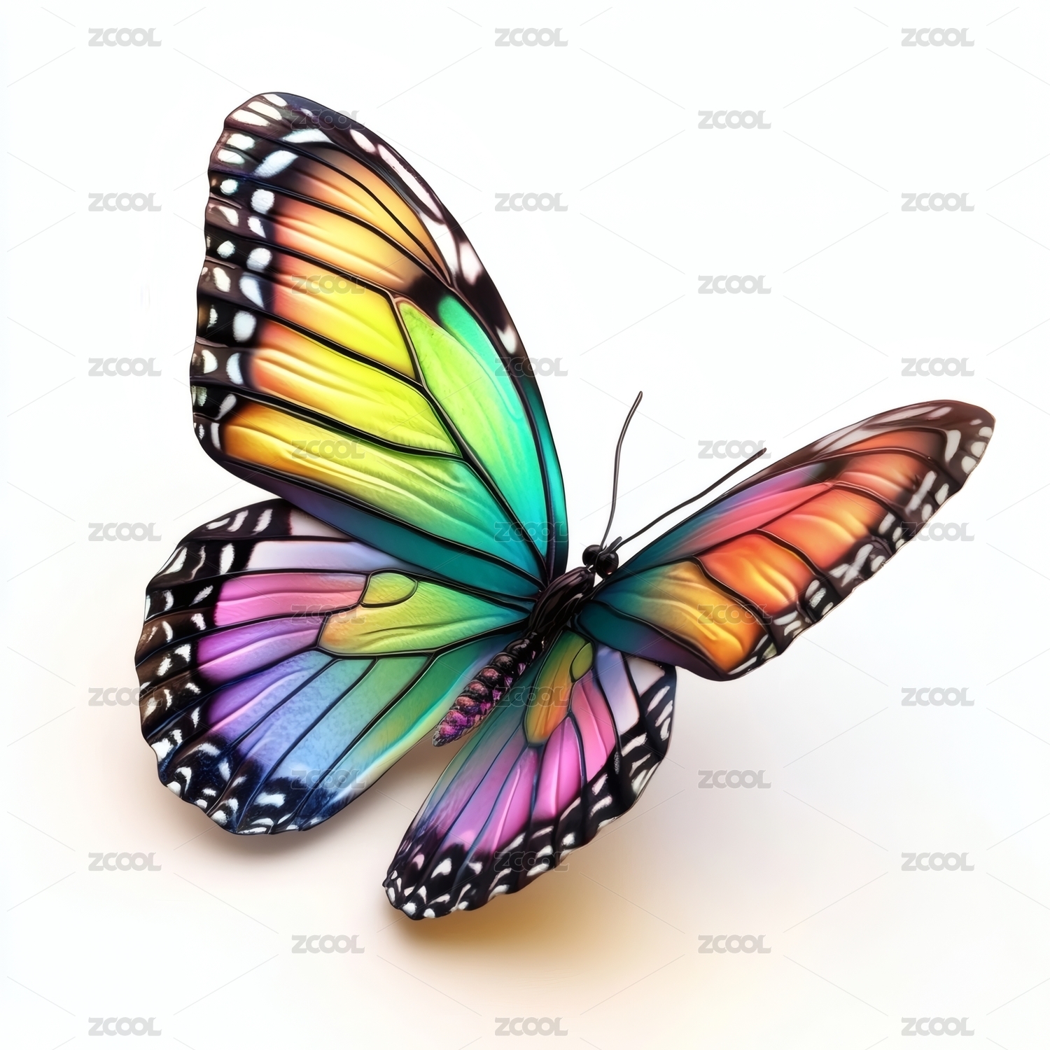 色彩丰富立体蝴蝶的视觉突出艺术画面
