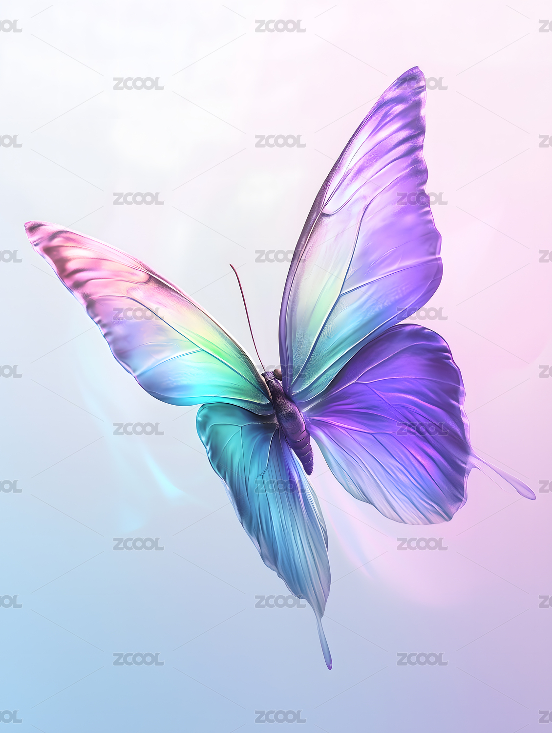 蓝粉渐变蝴蝶与清晰倒影的质感美感画面