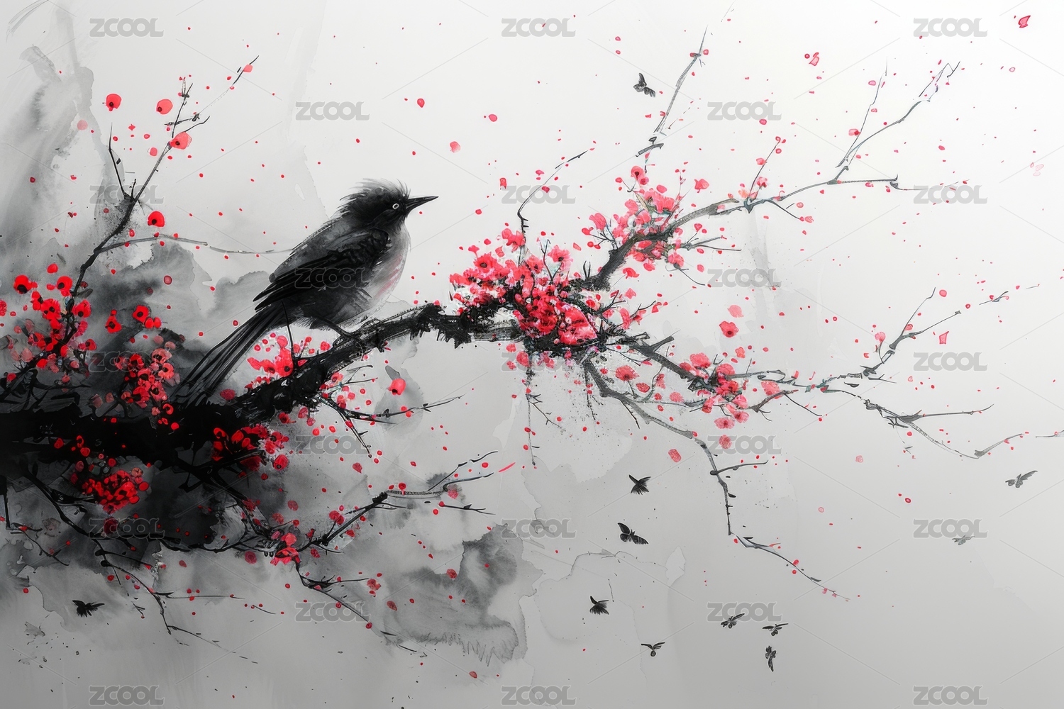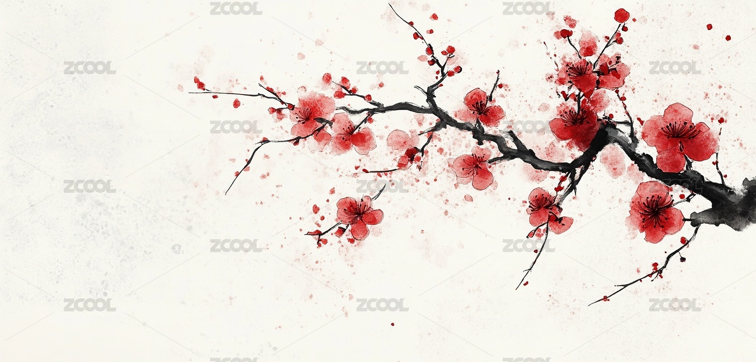 水墨丹青仙鹤飞舞,红梅绽放唯美画卷