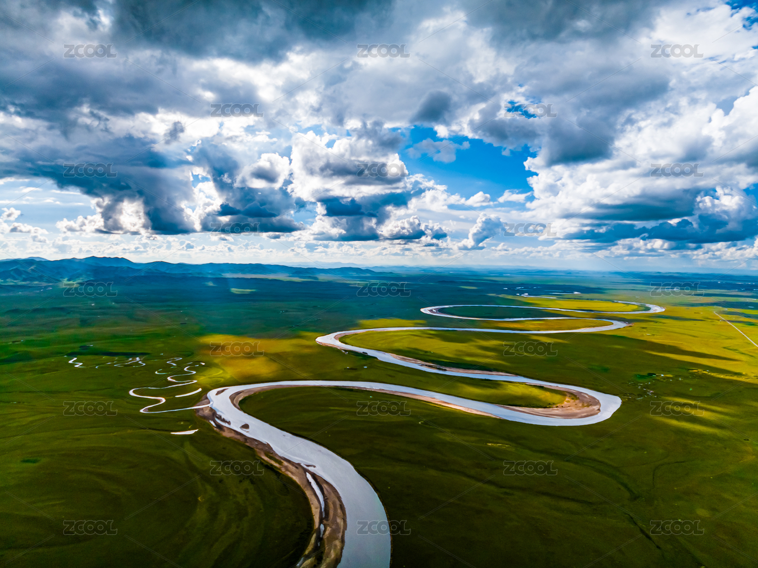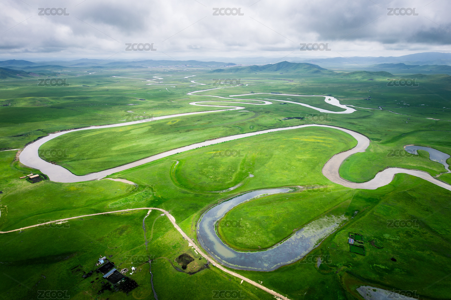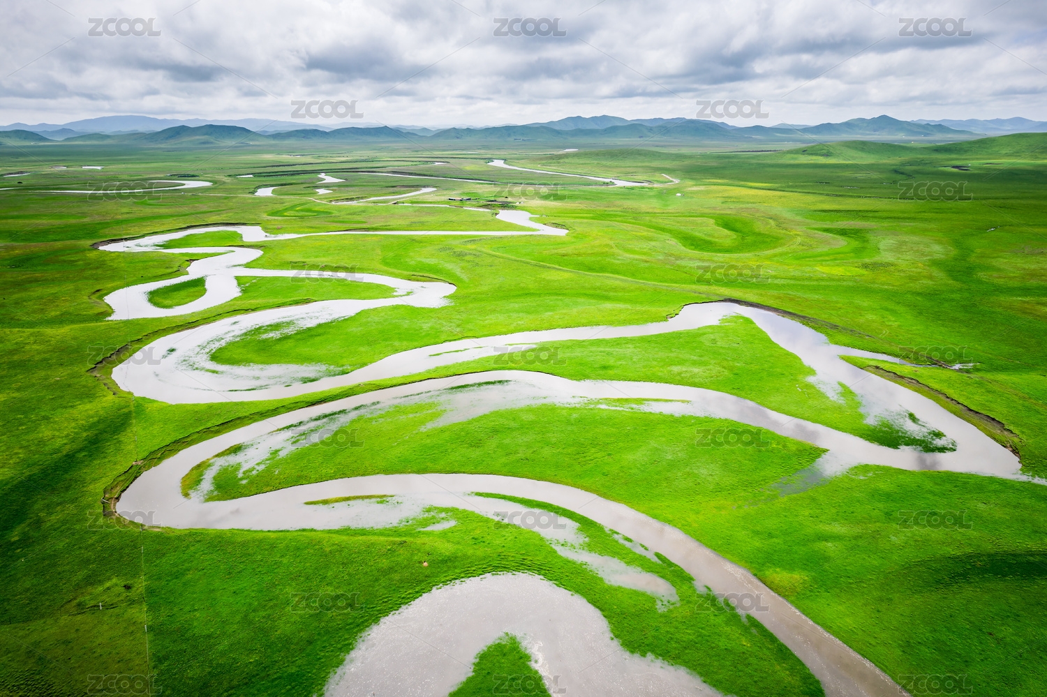 甘肃甘南黄河大草原玛曲阿万仓湿地蜿蜒河流