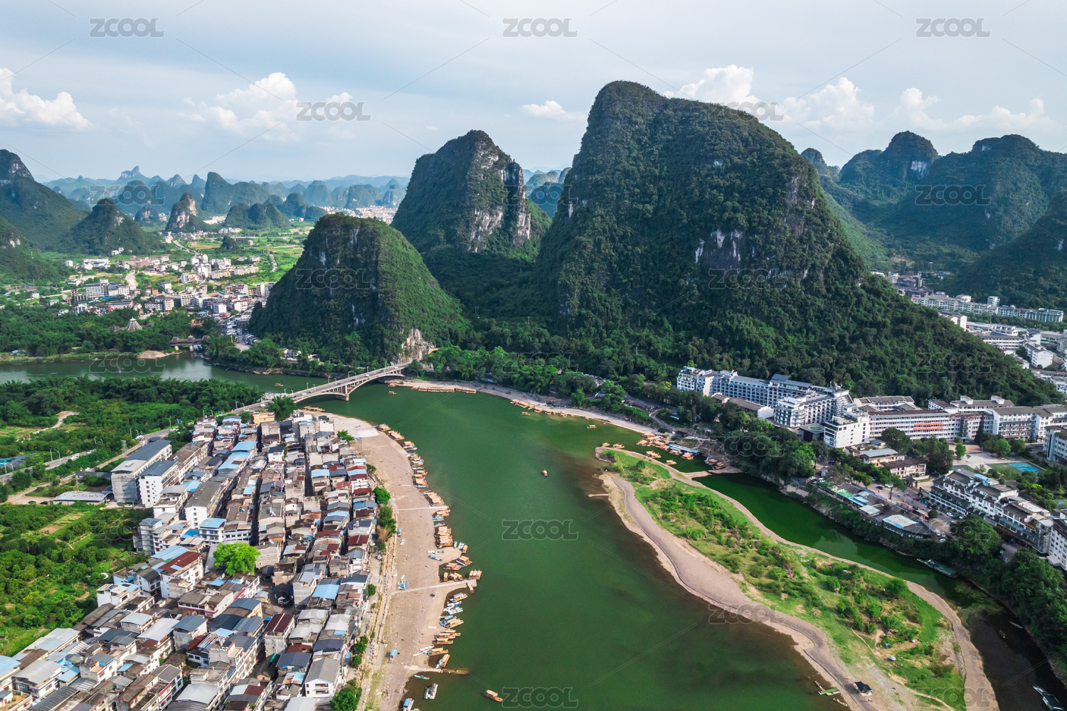广西桂林阳朔兴坪古镇漓江航拍山水自然风光