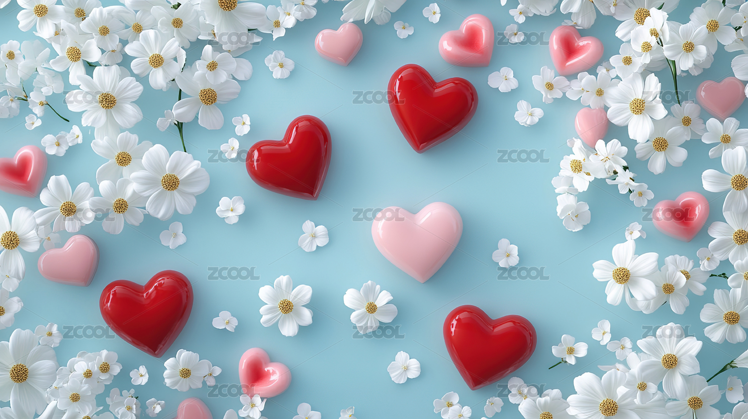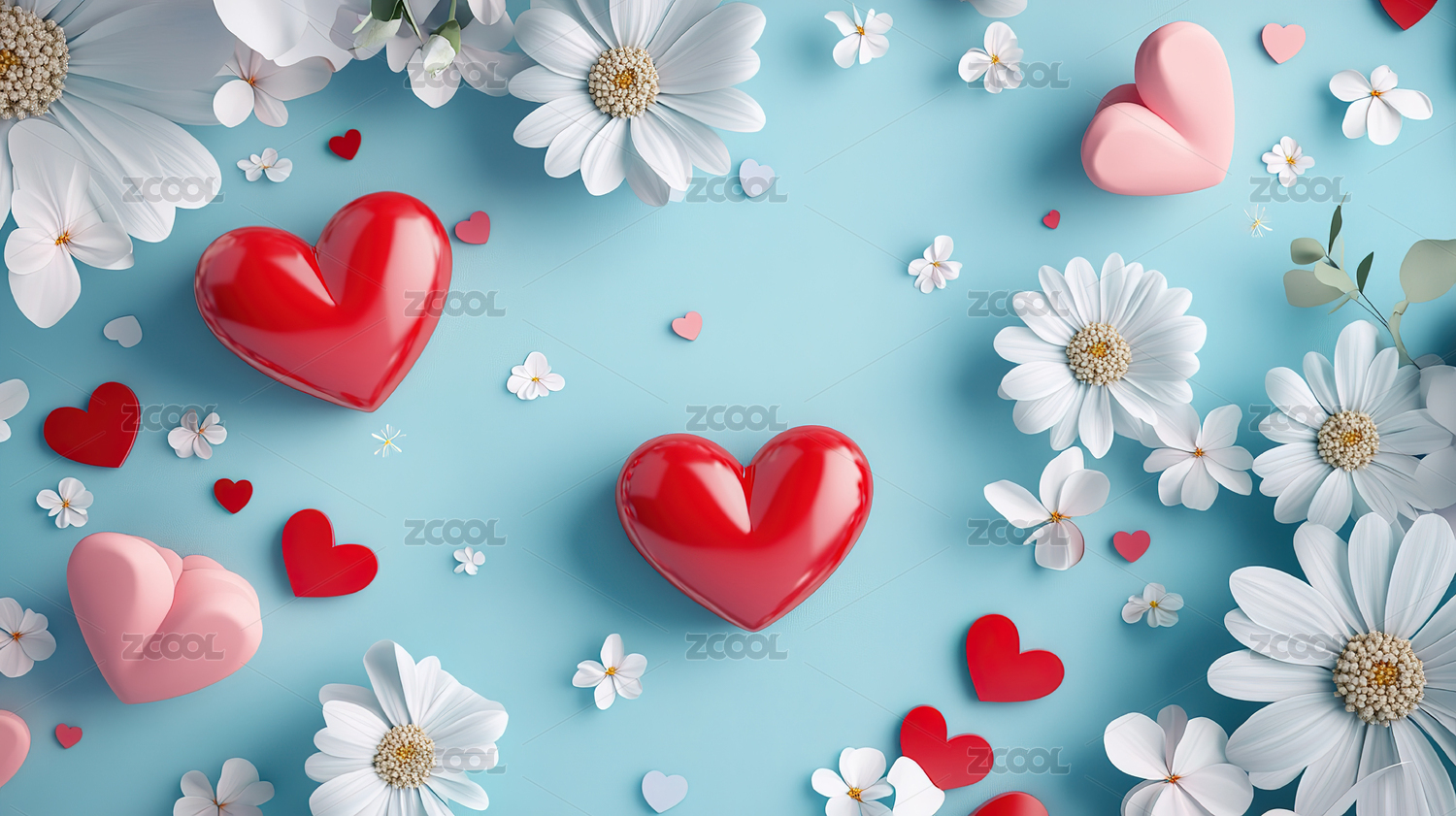 3D,花朵,爱心,展示区,留白页,背景,海报,插画,壁纸,图案