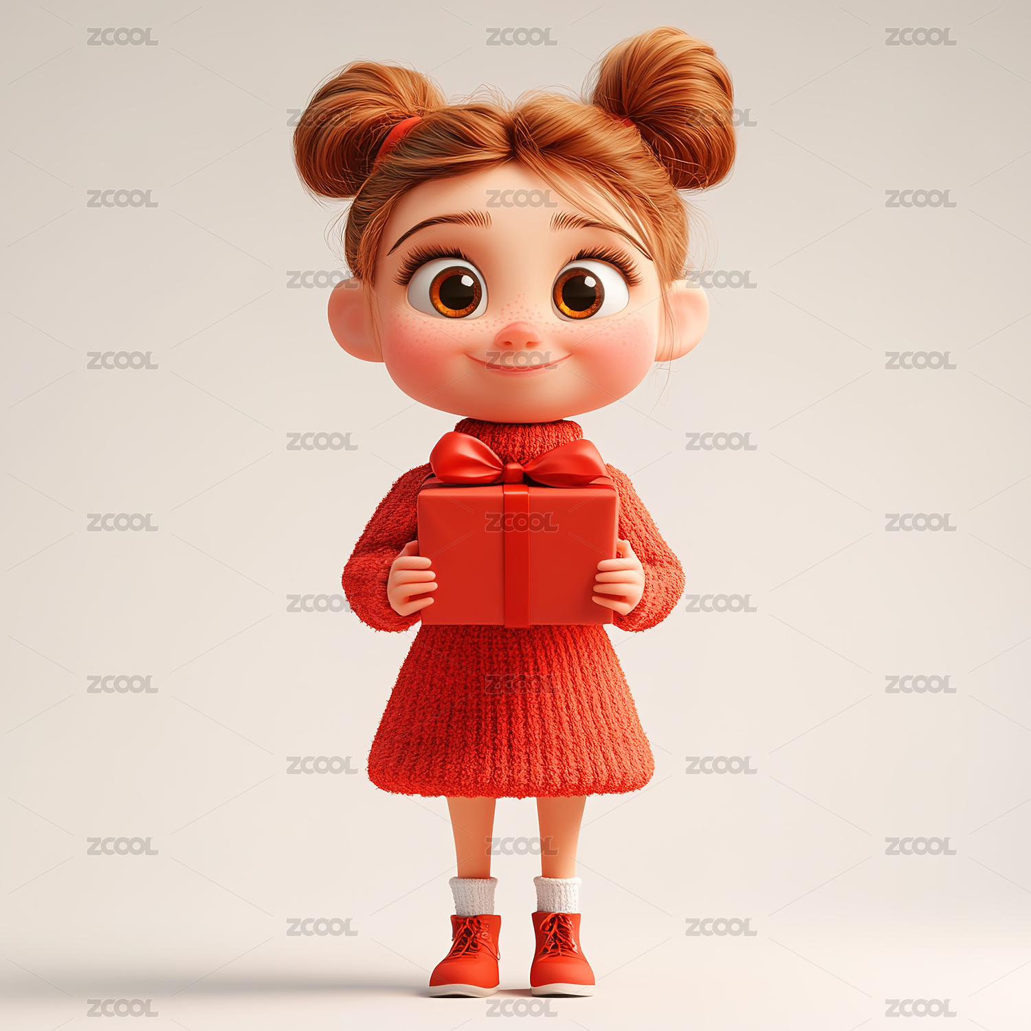 节日卡通3D可爱女孩怀抱礼品盒插画