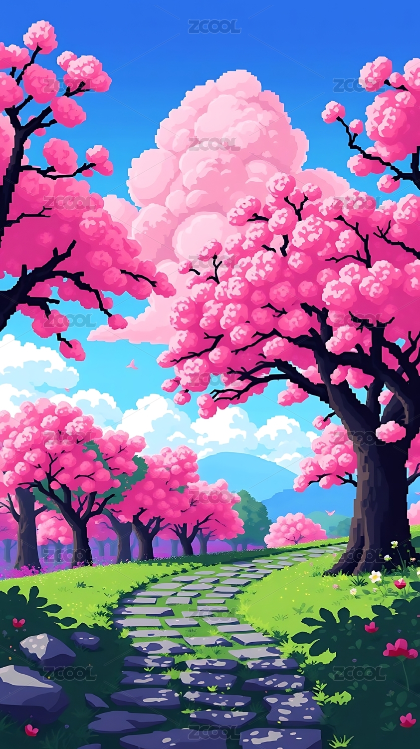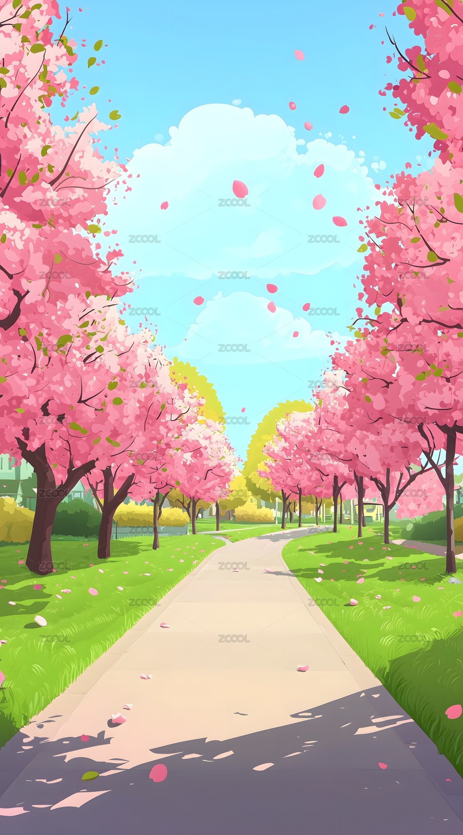 春日樱花小径插画