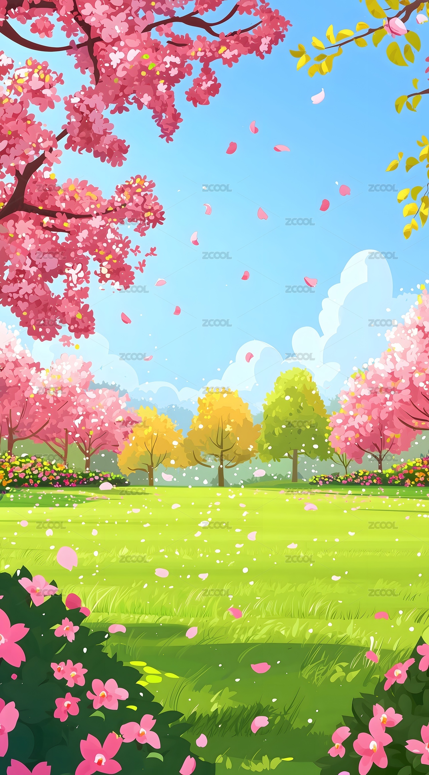 唯美的卡通春天风景插画背景