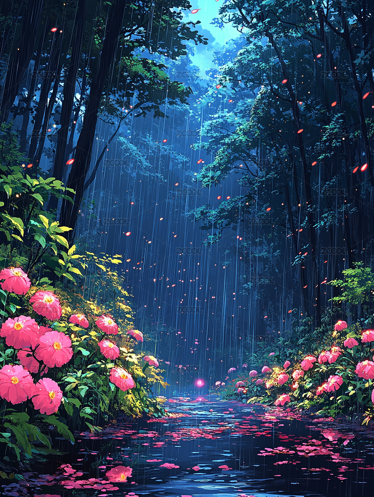雨中花园的梦幻景色