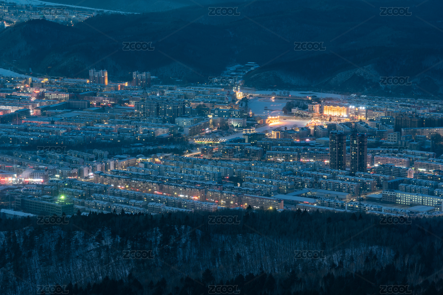 中国黑龙江伊春市城市中心夜景