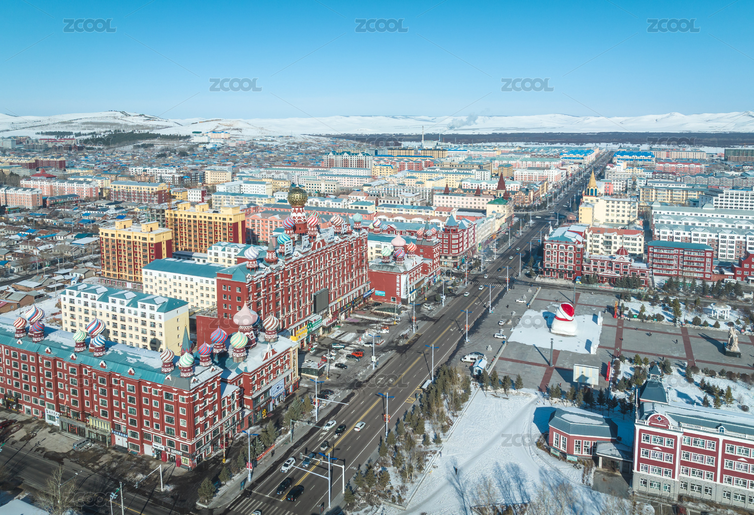 冬天中国呼伦贝尔傍晚的额尔古纳市楼房建筑