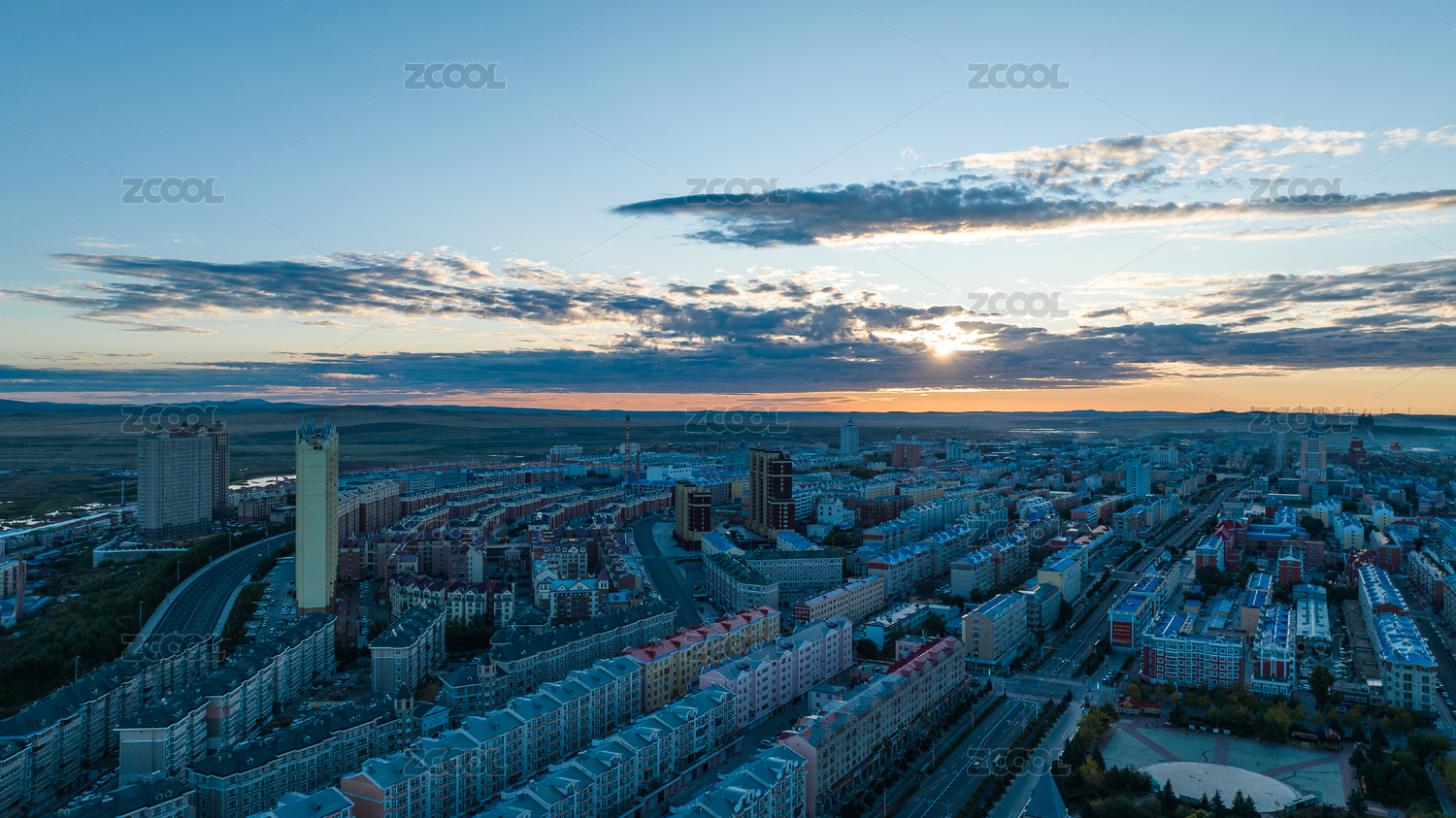 中国内蒙古呼伦贝尔市满洲里城市日出景观