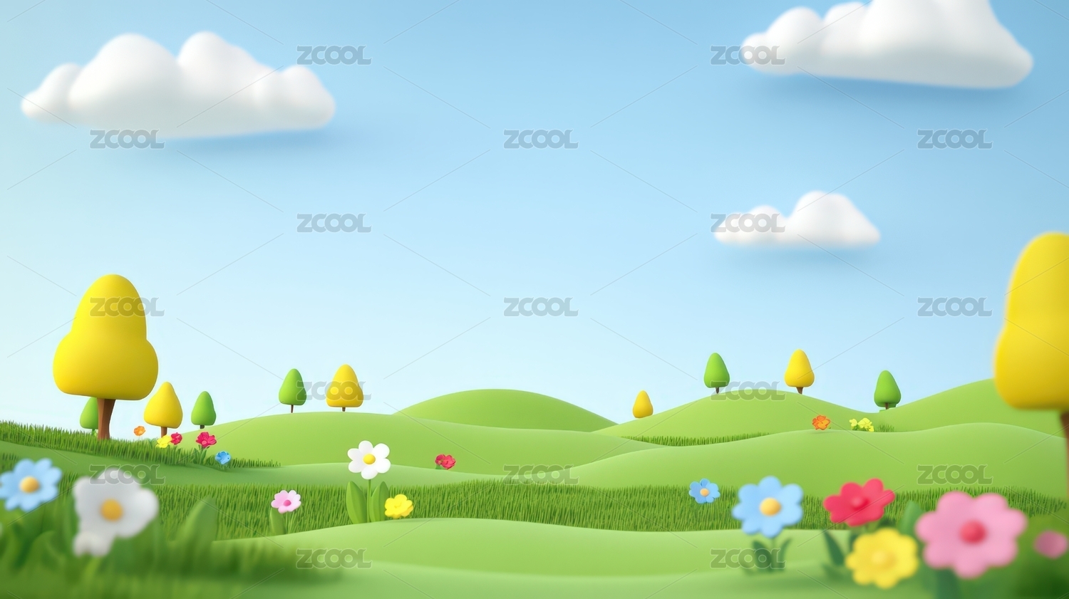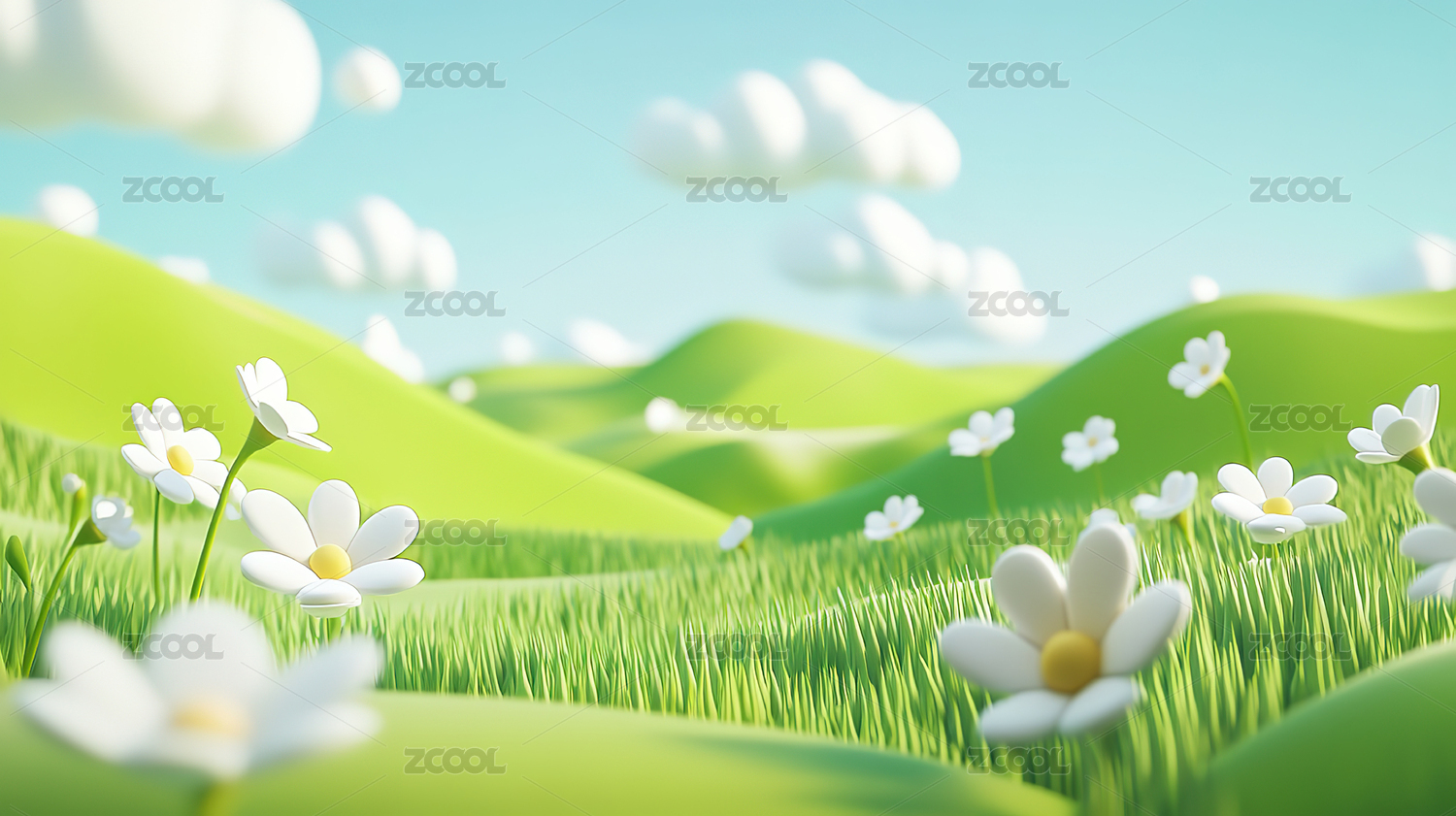 草地,蓝天,白云,小花,春天,自然,绿色,景观