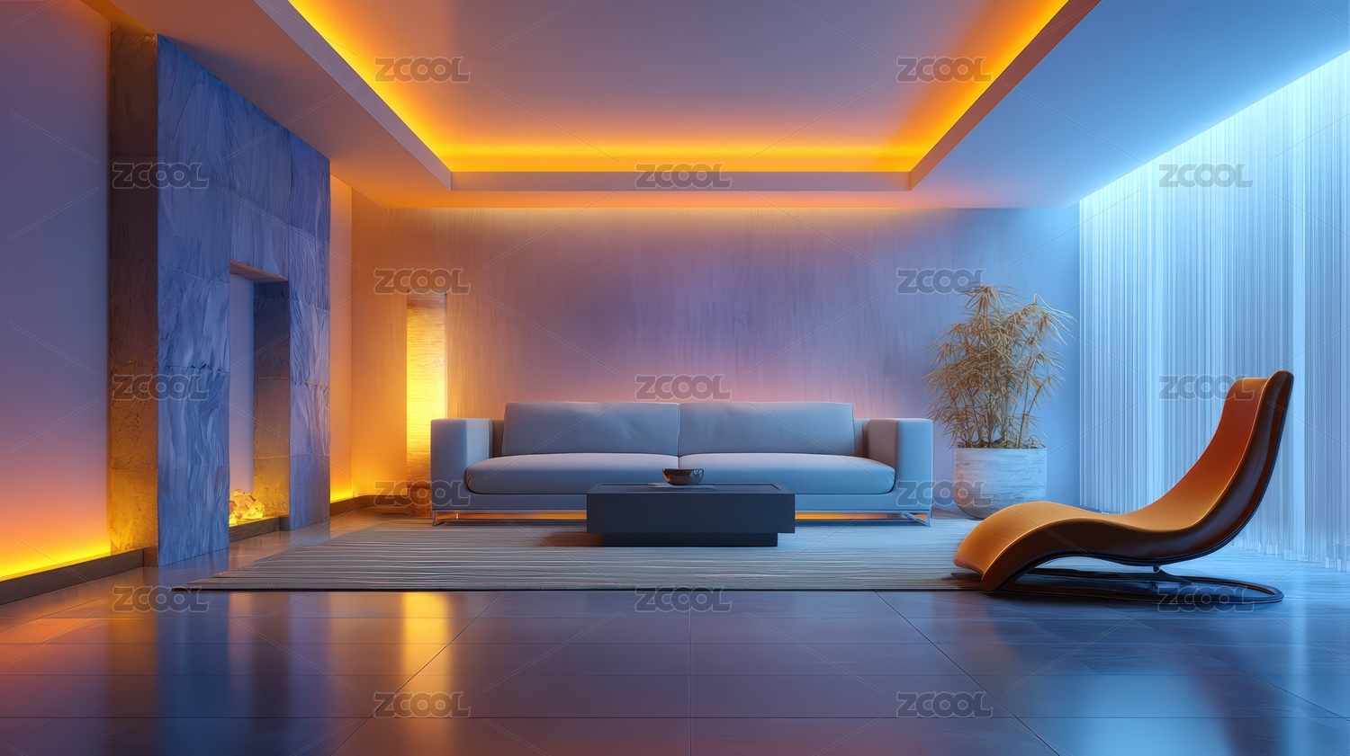 现代,简约,客厅,沙发,橙色,墙壁,电视,光线,室内,设计
