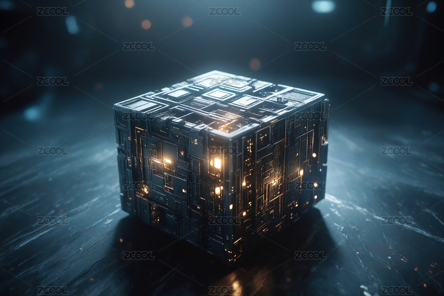 立方体,科技,发光,二极管,电路板,金属,未来,科幻,数字,矩阵