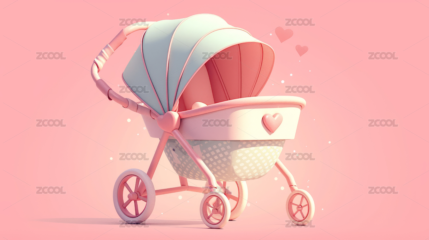 一个3D建模的粉色的婴儿车
