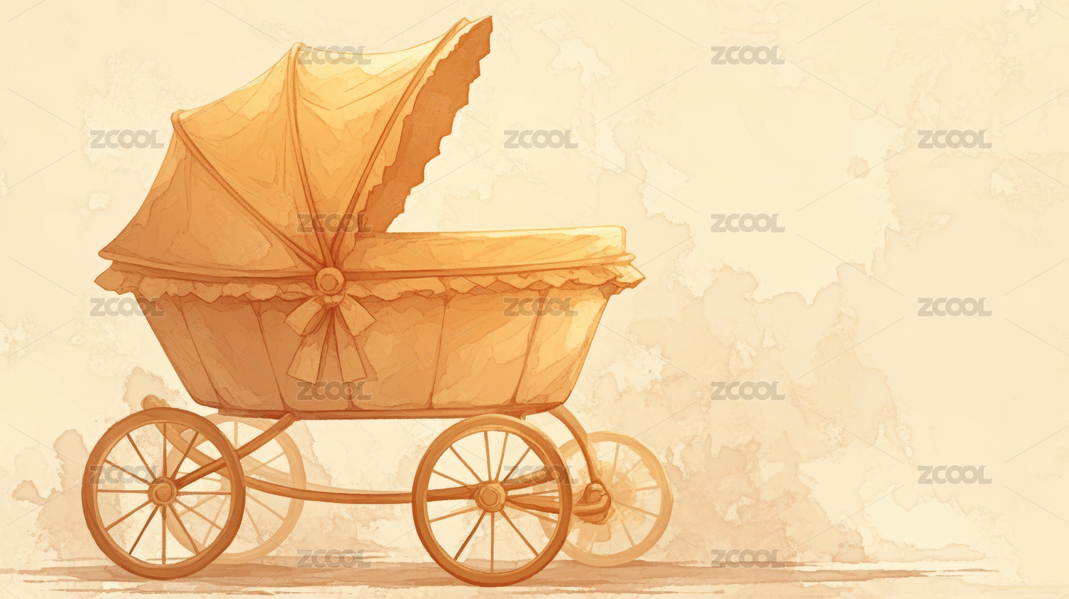 粉色婴儿车水彩画