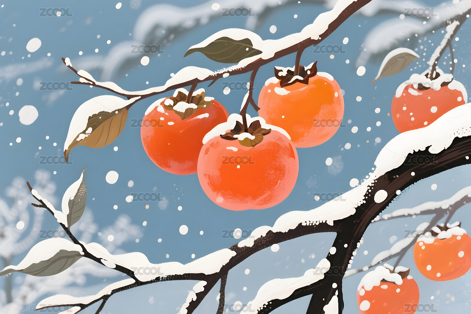 艺术,树枝,清新,自然,唯美,壁纸,静谧,枝头,柿子,装饰画