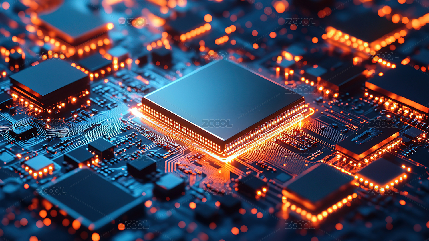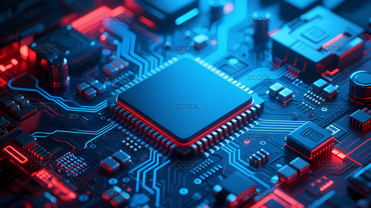 电路板,发光,红色,科技,未来,结构,创新,电子,芯片,现代