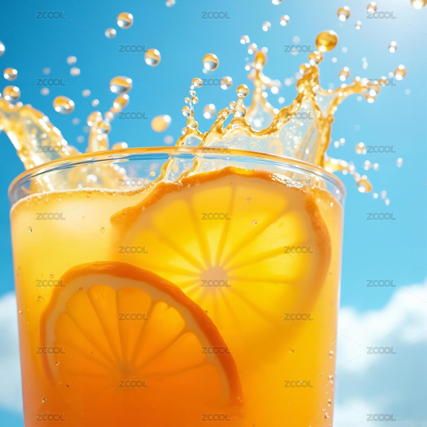 橘子汽水冰块果汁飞溅