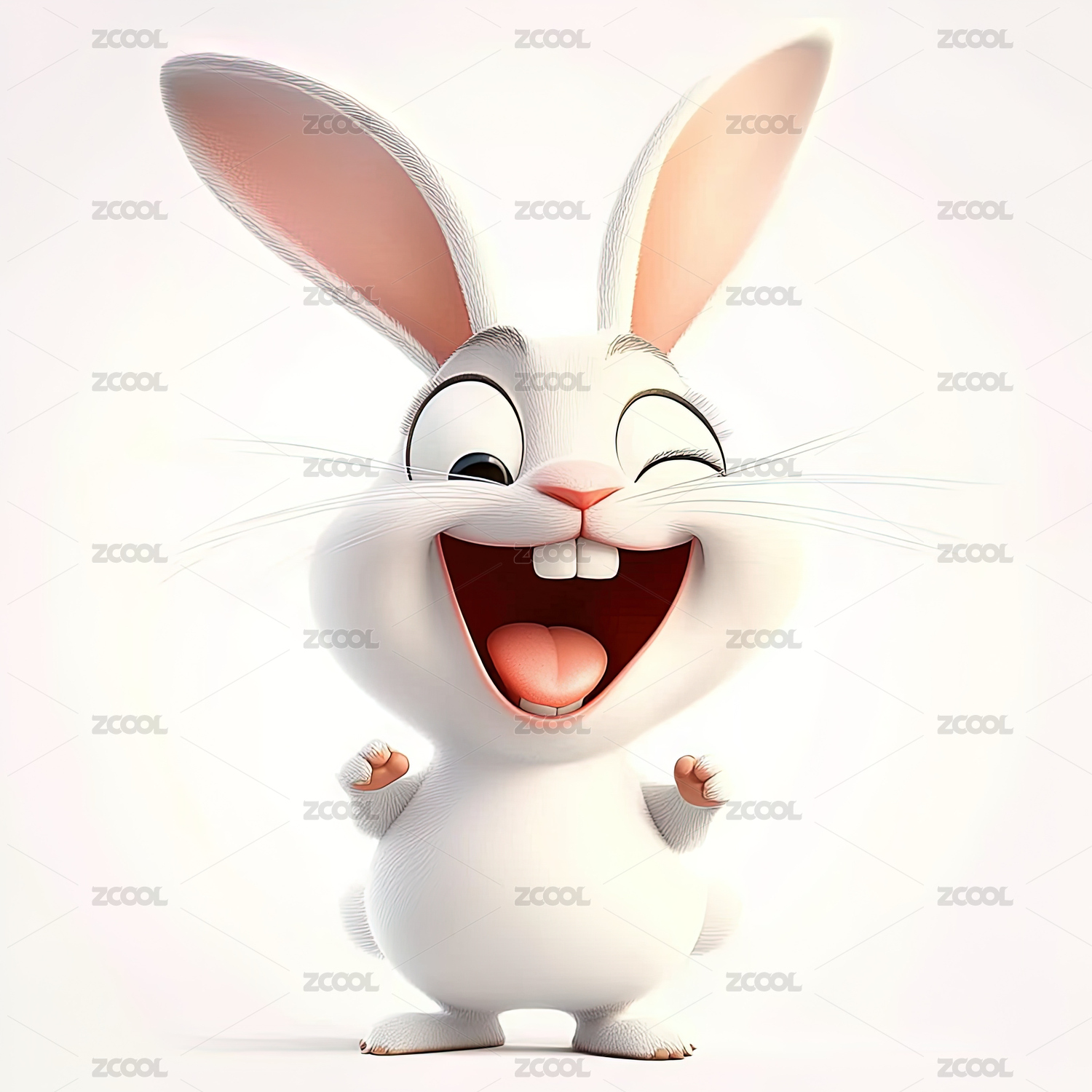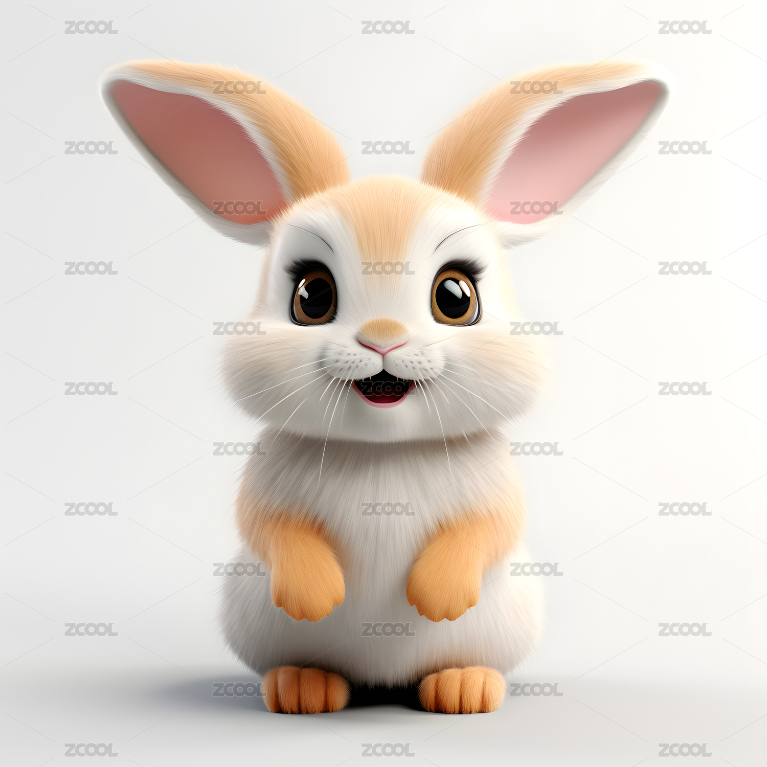 纯色背景一只可爱兔子的肖像插画3D渲染