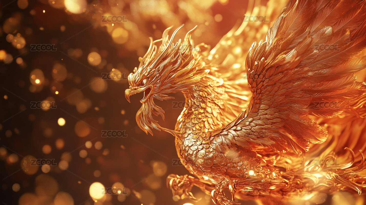 山海经神话传说天空飞翔火凤凰3D立体插画