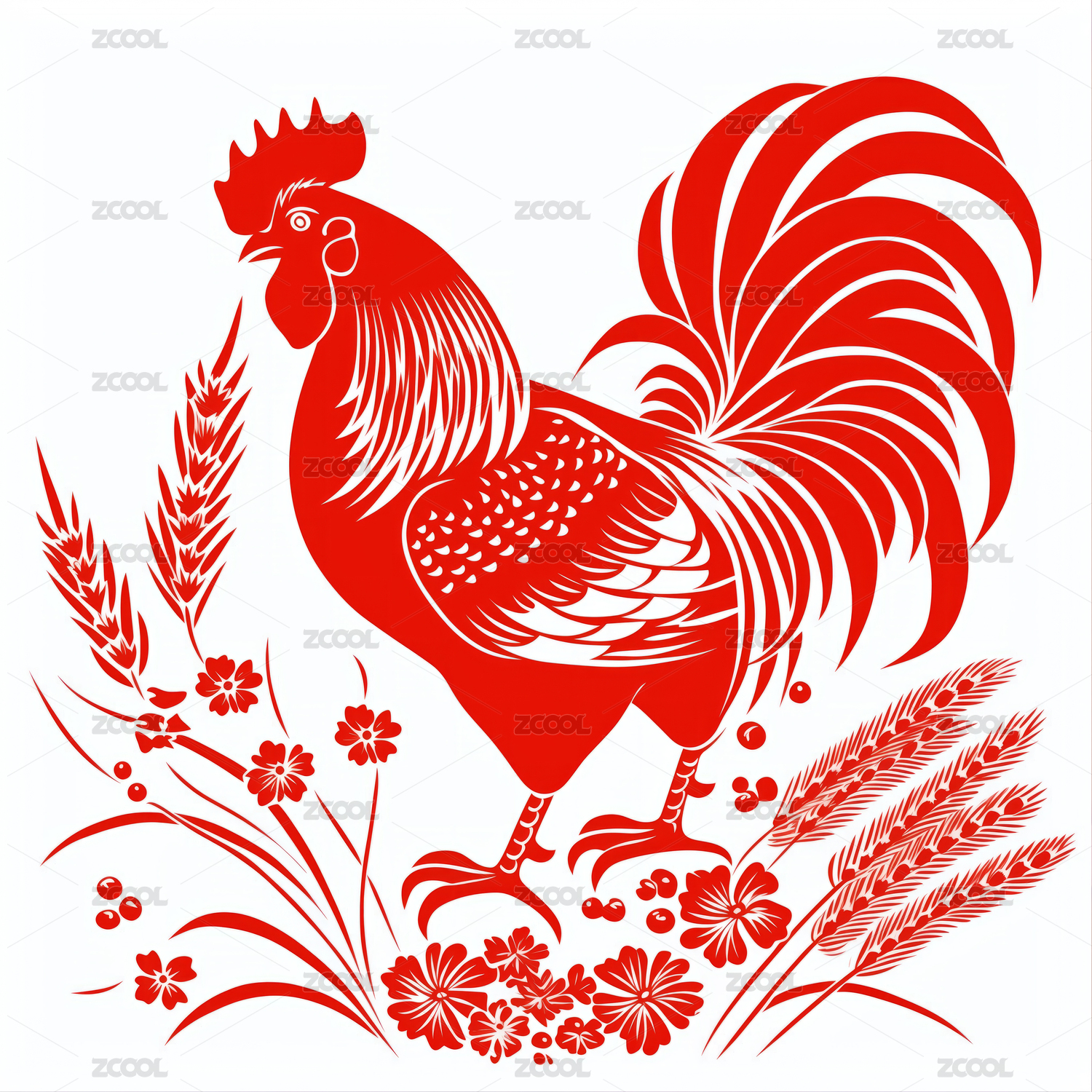 鸡年剪纸窗花年画圆形中国风春节印刷打印
