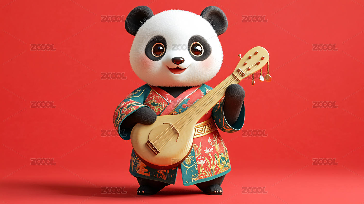 穿着唐装的熊猫演奏琵琶