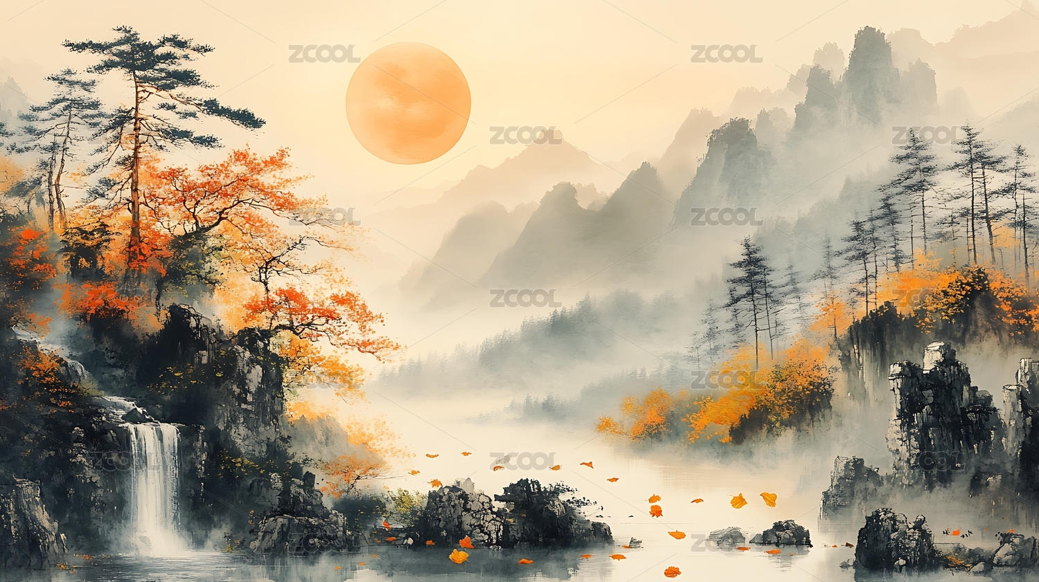 中国风,山水,国画,商务,背景,插画,古风,风景