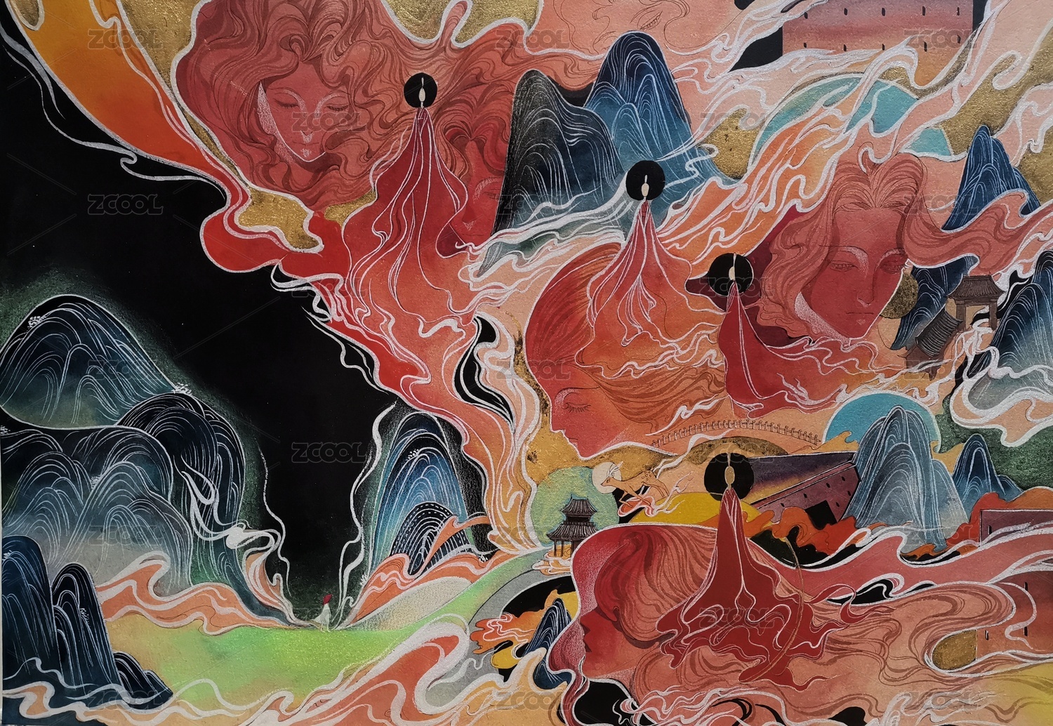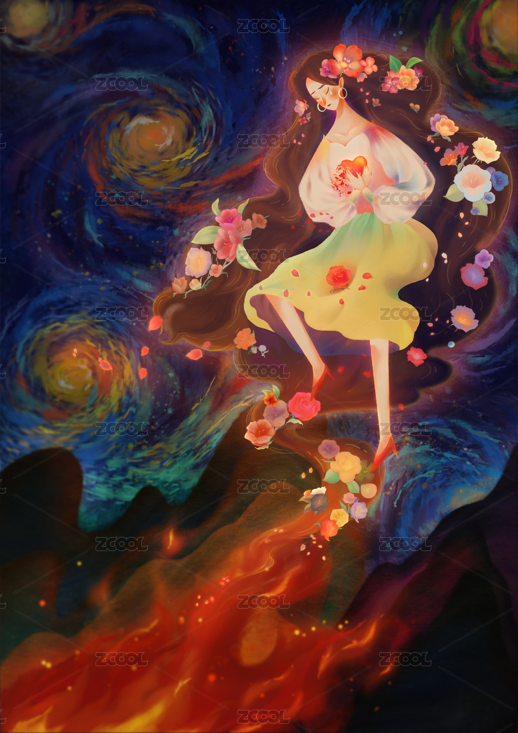 文艺小清新蜡笔彩铅肌理小众插画素材
