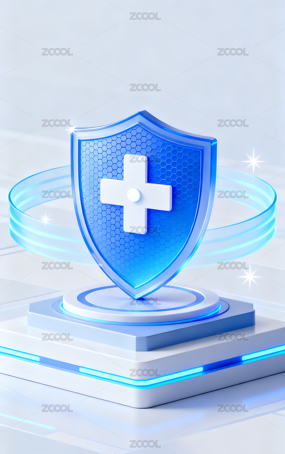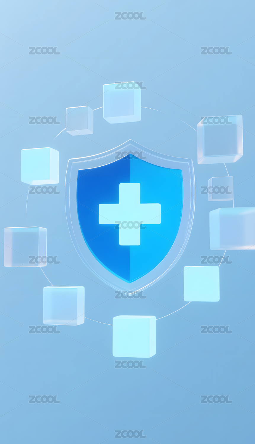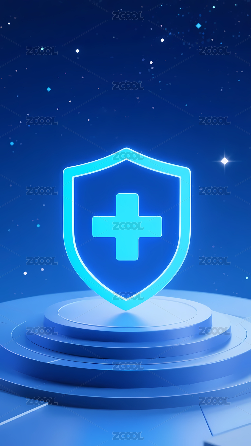 蓝色商务科技3D渲染盾牌图标主视觉背景
