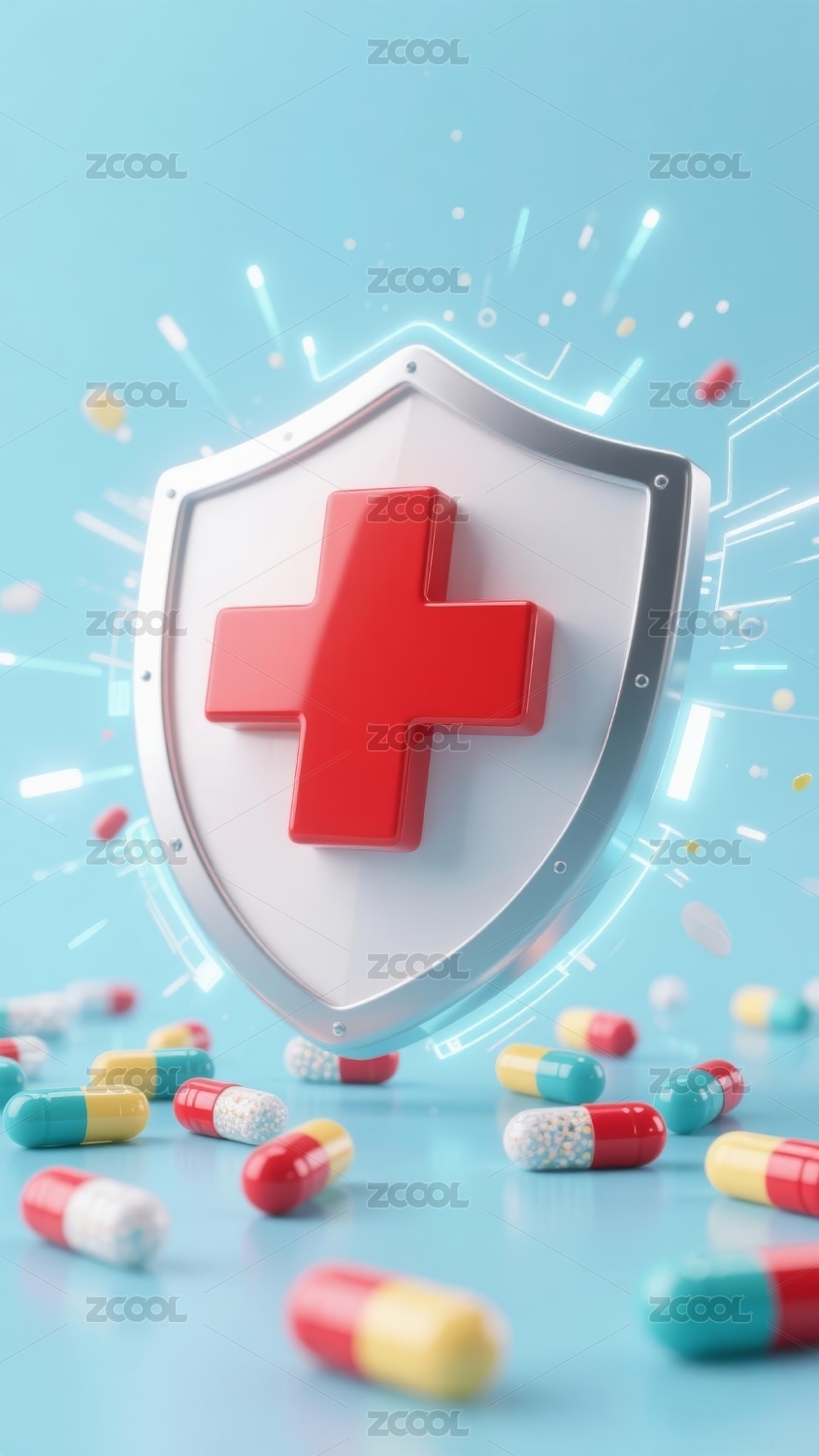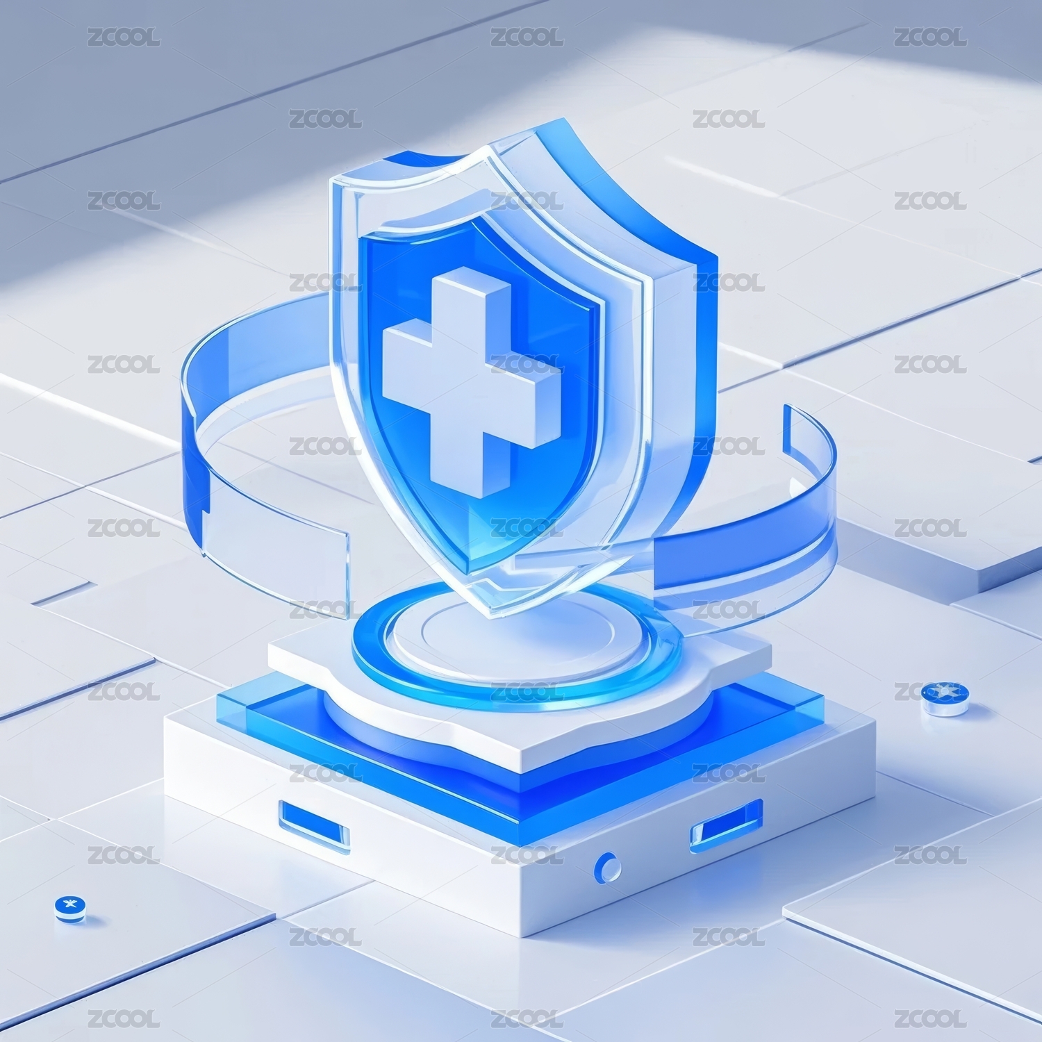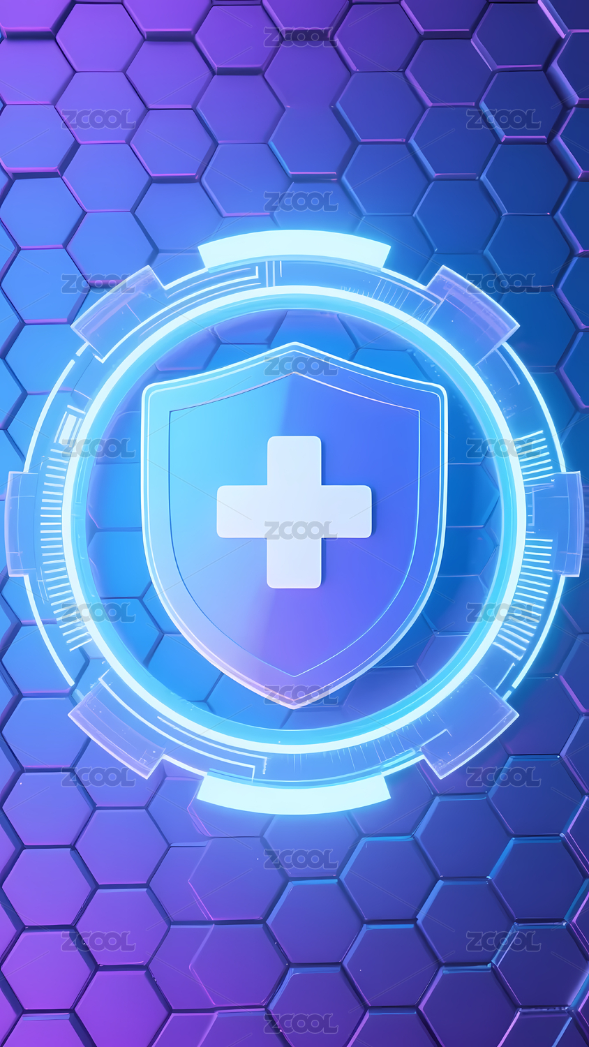 蓝色商务科技3D渲染盾牌图标主视觉背景